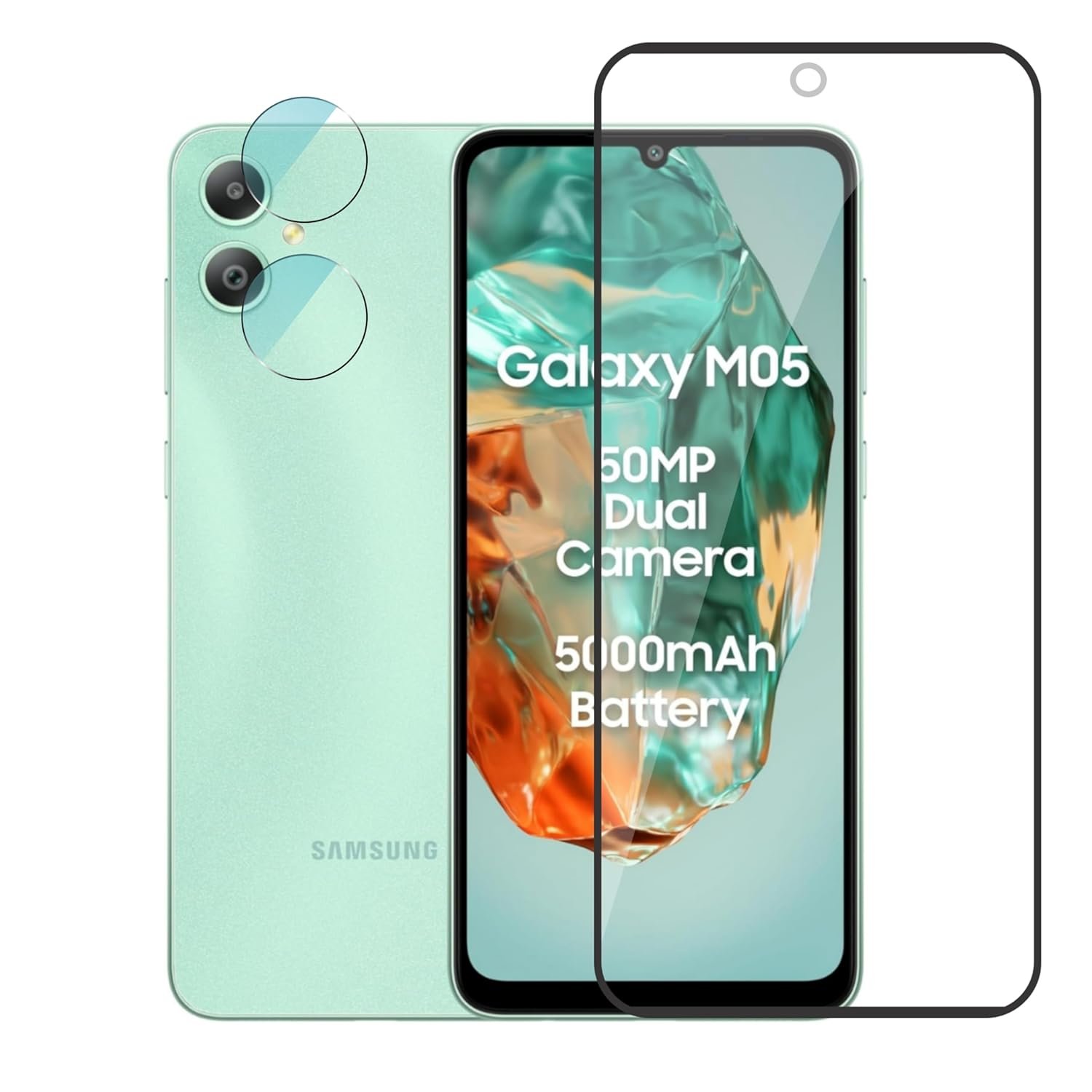 Ayra Samsung Galaxy M05 11D Tempered glass with Back Camera lens protector For (Combo pack)