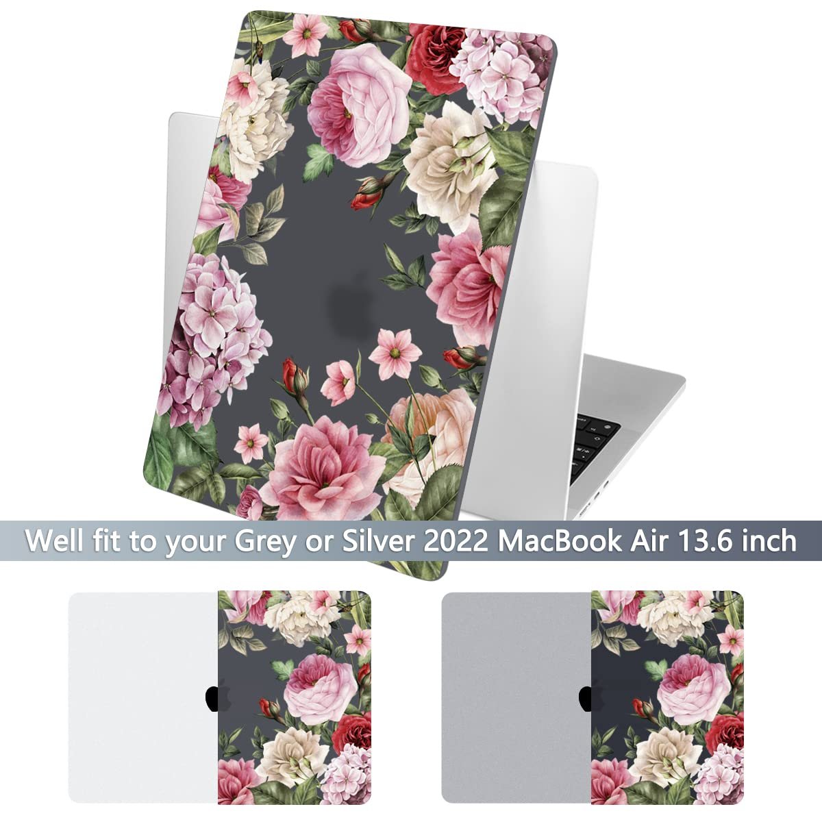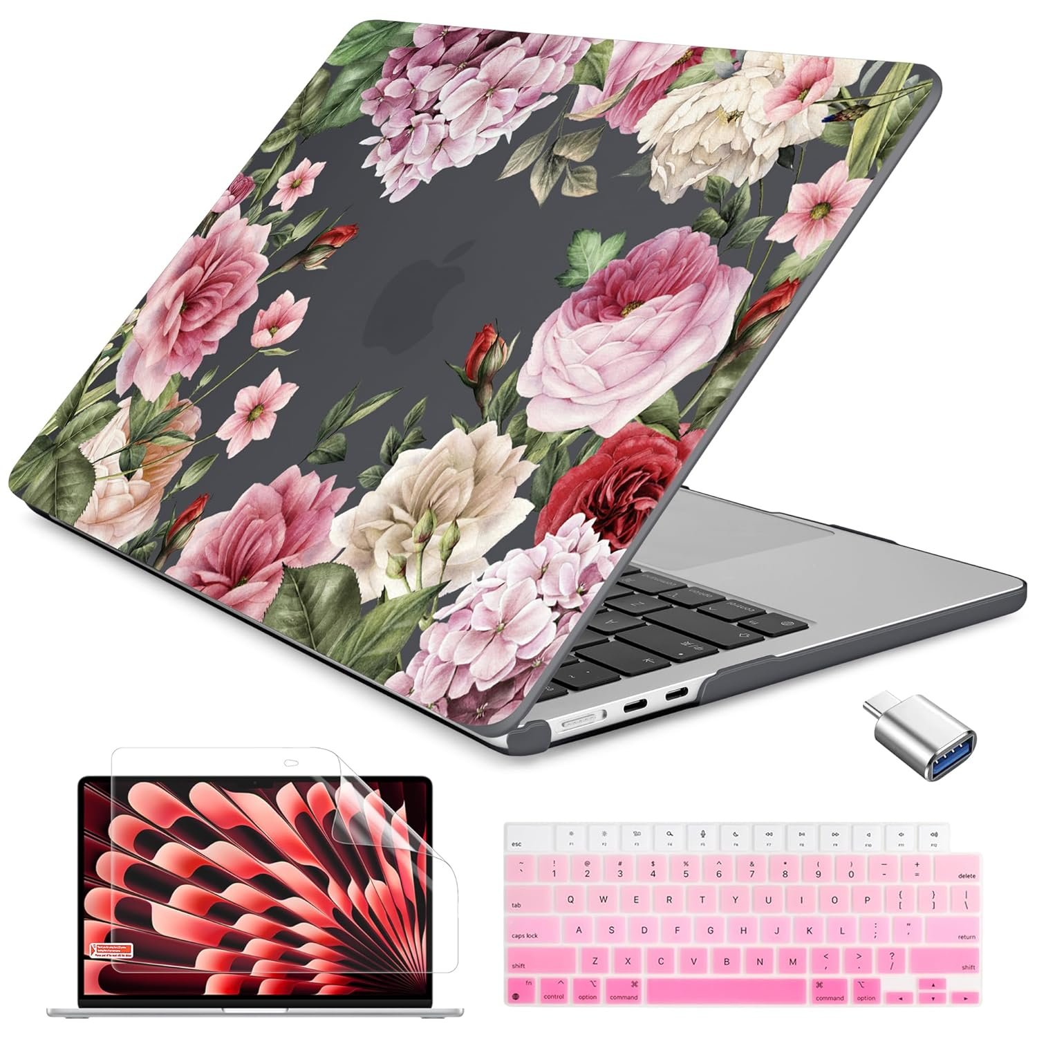 Batianda Case for New MacBook Air 13.6 inch 2025 M4 2024 2022 Release Model A3240 A3113 M3 A2681 M2, Designed Protective Hardshell Keyboard Cover and USB-C OTG Adapter, Flowers