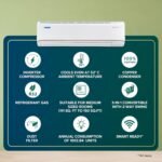 Split AC with inverter compressor: Variable speed compressor which adjusts power depending on heat load.