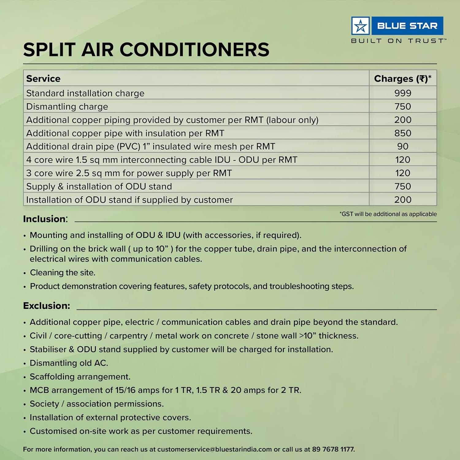Smart Ready: The AC is ready to be operated* using Blue Star’s Smart App and through Voice Command using Amazon Alexa or Google Home *To operate through Smart App or Voice Command, user has to pay an additional charge to convert the AC into Smart AC completely.