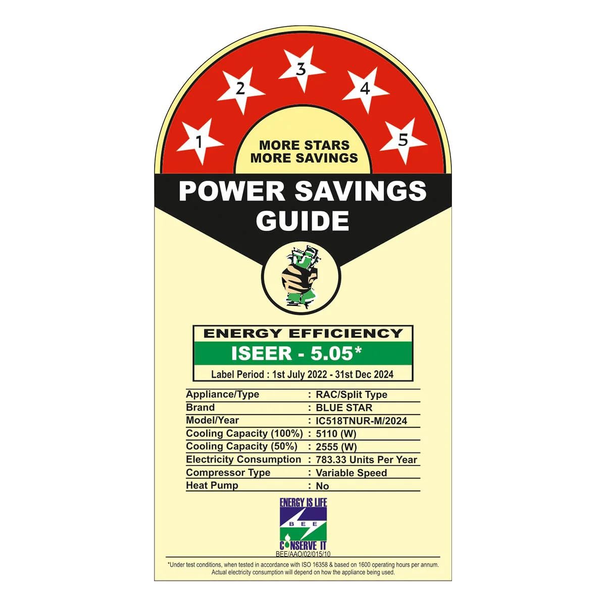 BLUE STAR 5 Star 1.5 Ton Convertible 5 in 1 Cooling Inverter Split Air Conditioner (BLUE STAR AC IC518TNUR, IU)