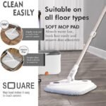 360-DEGREE UNIVERSAL MOP HEAD: The square mop head efficiently cleans dead corners, crevices, and hard-to-reach areas under furniture, ensuring a thorough clean.
