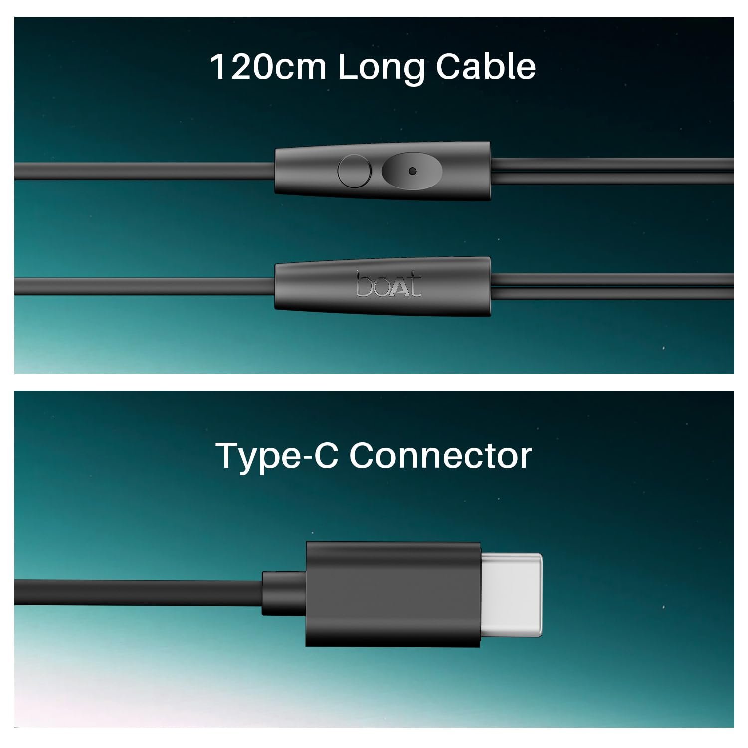 Type-C Jack & 120cm Cable: Plug into effortless audio with the boAt BassHeads 300C Wired Earphones. Featuring a Type-C connector, these earphones let you connect without fumbling on long travels or daily commutes. Designed with a 120cm cable, these earphones offer ease of movement while keeping your style on point and your audio within reach.