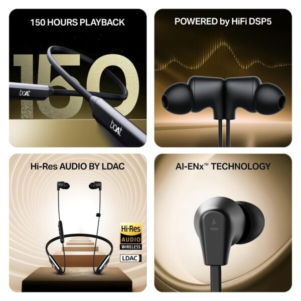 boAt 2025 Launch Rockerz Trinity Grande, 150H Battery, Hi Res Audio by LDAC, Dual Pair, ENx Tech, Stream Ad Free Music via App Support, Bluetooth Neckband, Wireless with Mic Earphones (Black)