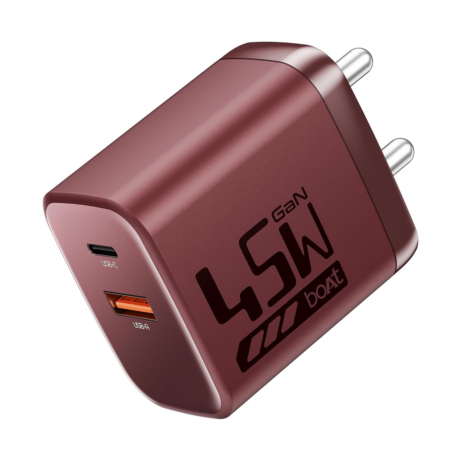 boAt 45W Gan Smartphone Charger, 2 Output Ports, PD, PPS & QC 3.0, Gan Chip Tech, Auto-Detect, Compact & Lightweight, Heat & Corrosion Resistant, Smart IC Protection, Lightweight 2 Pin(Monarch Red)