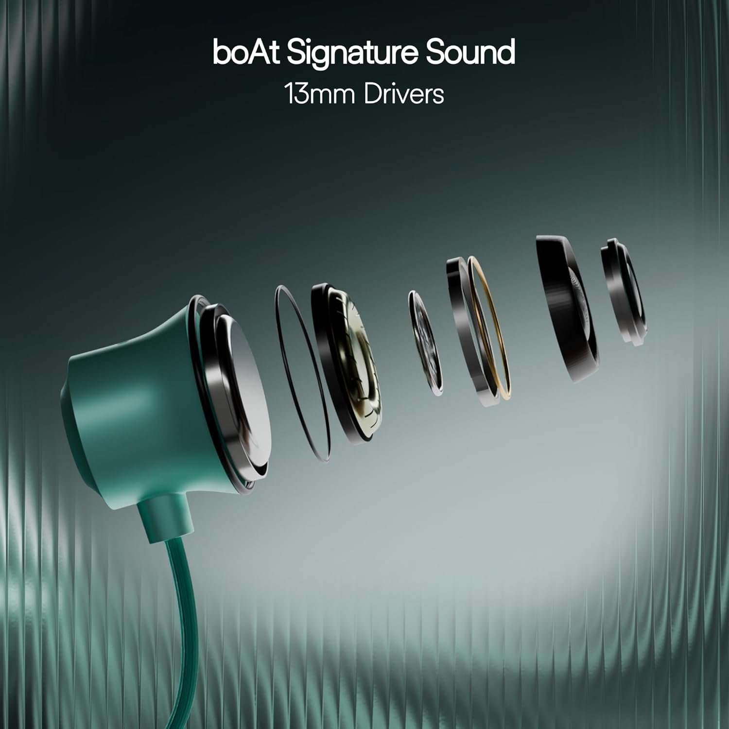Boasting high-performance 13 mm drivers, these earphones bring each sound element alive for enhanced listening. Experience your playlist like never before with bass-rich boAt Signature Sound from the integrated dual drivers.