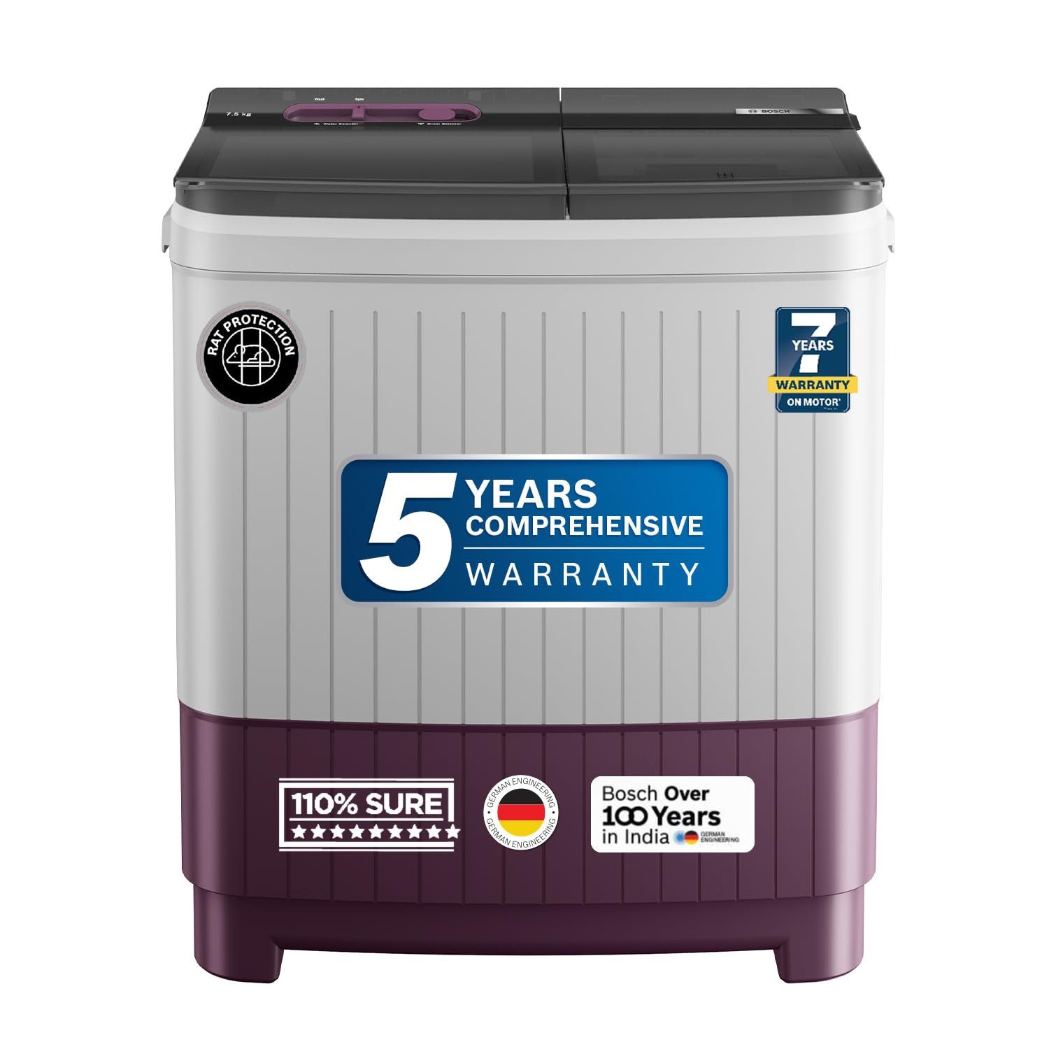 Bosch 8.5 kg 5 Star Semi-Automatic Top Loading Washing Machine (2025 Model, WJP854V0IN, 3 Wash Programs, Anti-Rust Body, 1300 RPM Spin Speed, Wine, 5 Years Comprehensive Warranty)