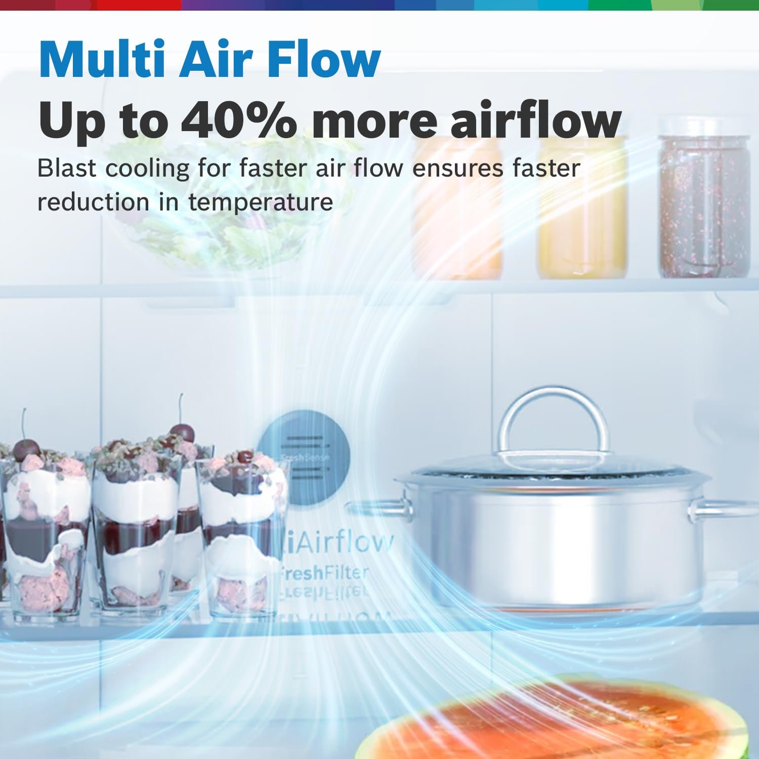 Special Features: Inverter Compressor, Multipurpose box for your medical essentials or cosmetics, Door Ajar Alarm, Adjustable Shelves, No Frost feature protects food from ice crystal formation, Multi Air Flow, No odour mixing in Mid Section, 7 Sensors, 8-in-1 Convertible Modes, VitaFresh Technology