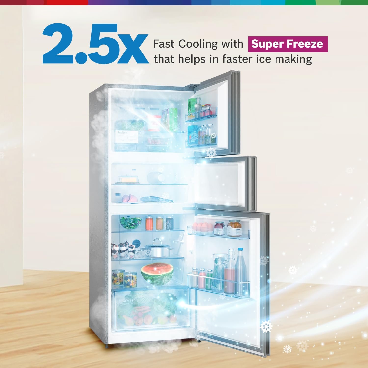 Bosch MaxFlex Convert 303L 3 Star Inverter Frost Free Triple Door Refrigerator (2023 model, CMC33S03NI, 8-in-1 Convertible, UV Protected Body Shield, VitaFresh Technology, Adaptive UI, Sparkly Steel)