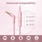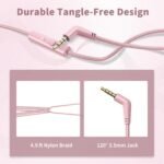 Wired Headphones with Microphone, Over Ear Headphones Wired with 4.9ft Tangle-Free Nylon Cord, 3.5mm Plug in Headphones for Smartphone,Tablet,Computer,MP3/4 (Pink)