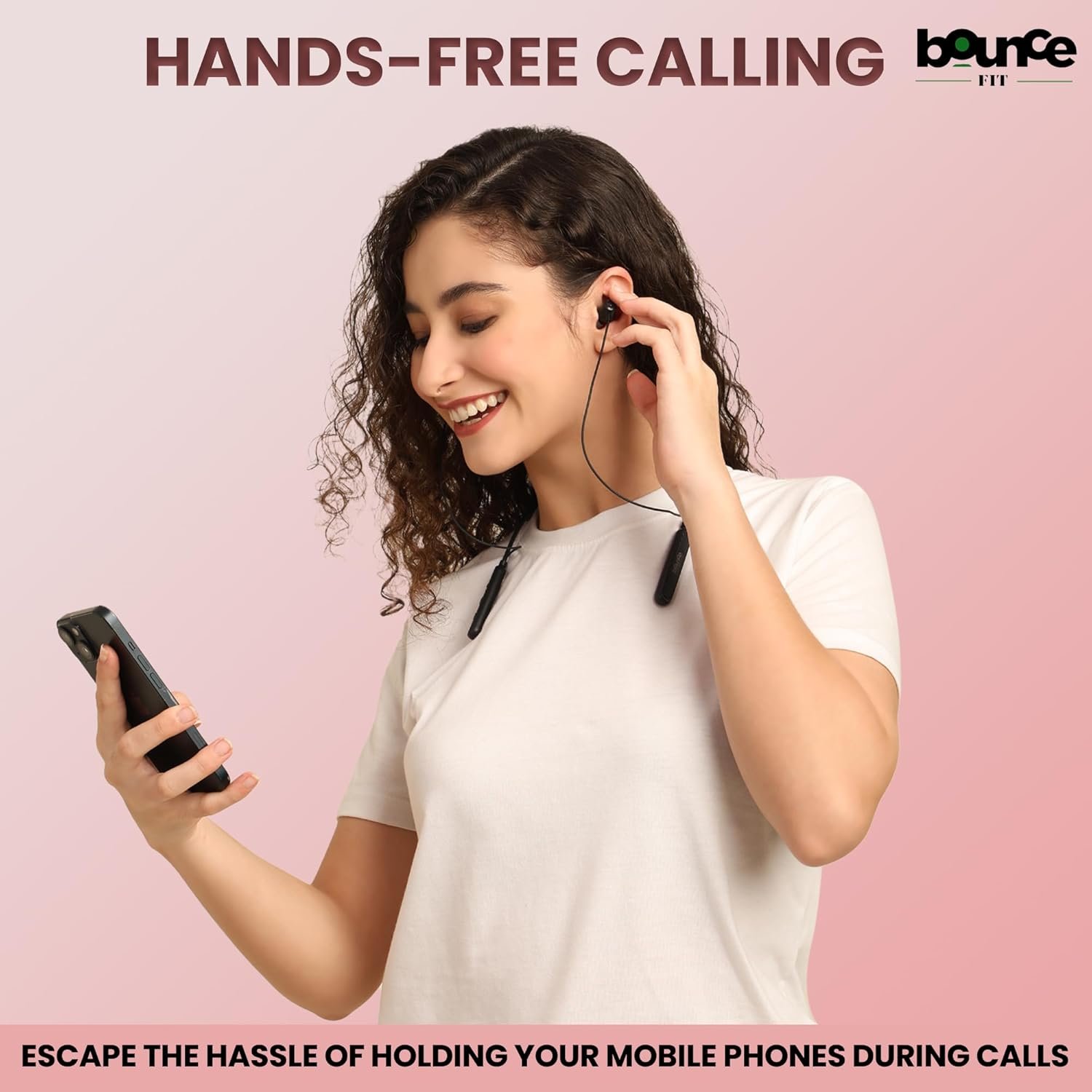 Bouncefit Sonic 144 Bluetooth Wireless Neckband, 35 Hours Continuous Playback Battery, Fast Charge, IPX7, Low Latency, Active Noise Cancellation, Magnetic Earbuds with Mic Earphones (Black)