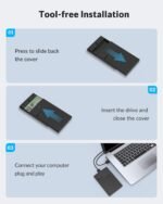 【Easy to Use, Plug and Play】- From installing to using only few seconds; slide off the back cover of the hard drive reader, insert the hard drive tightly and close the lid, connect attached cable to your devices, then you can open files, play videos, back up data, etc. Support hot swap. [Note: Please format the new hard disk before using it. When use finished, eject the drives then unplug the cable. Do not unplug the cable halfway to avoid data loss.]
