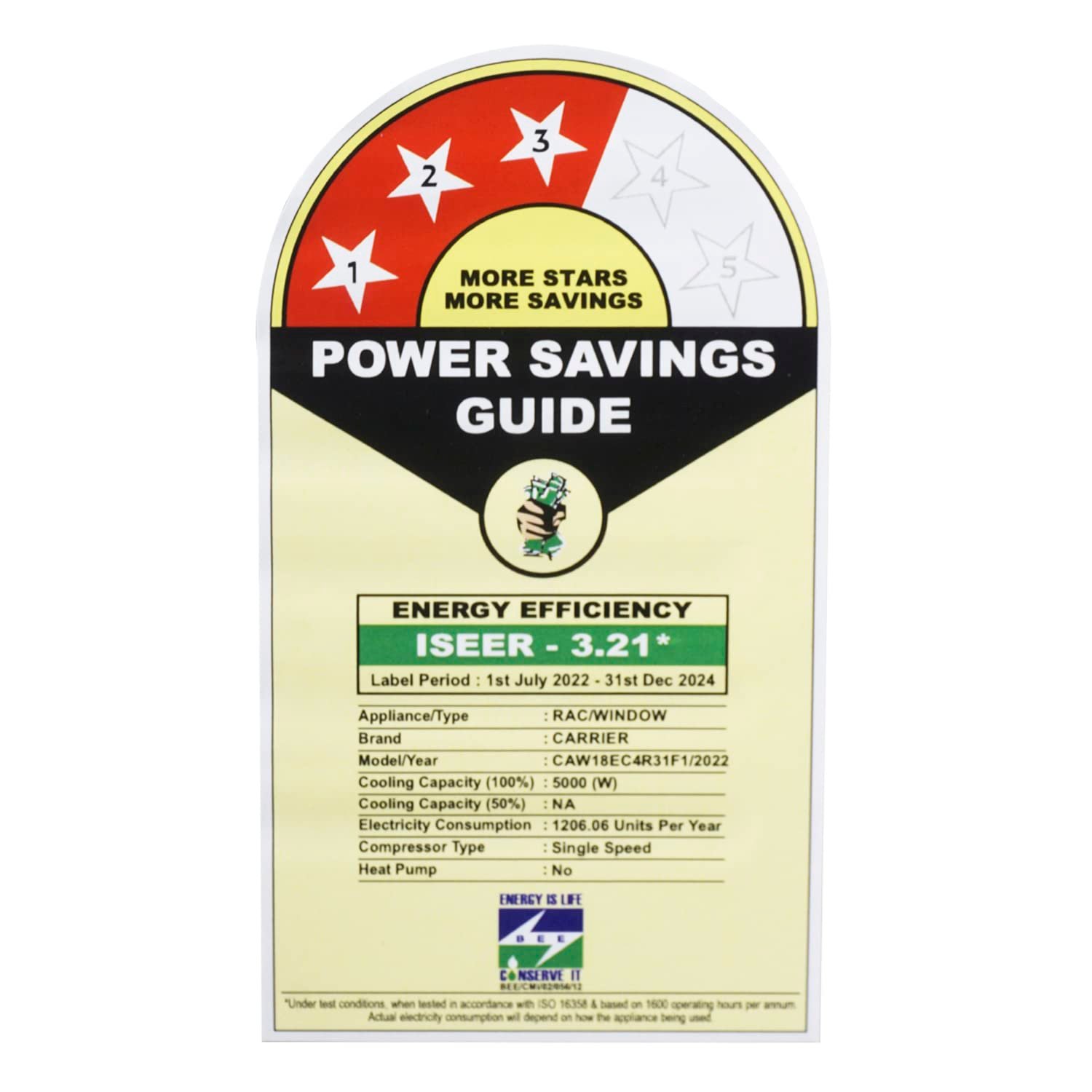 Carrier 1.5 Ton 3 Star Window AC (Copper, Estrella Dx, White)