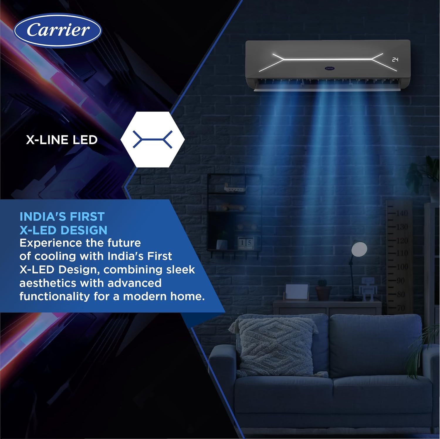 Key Features: X-Line Led, Smart Energy Display,Flexicool Hybridjet Inverter Compressor; Convertible 6-in-1 cooling; HD Filter; Insta Cool for Faster Cooling; Hydro Blue Coating for Long Lasting Comfort; Refrigerant Leakage Detector; Auto Cleanser; ADC Sensor