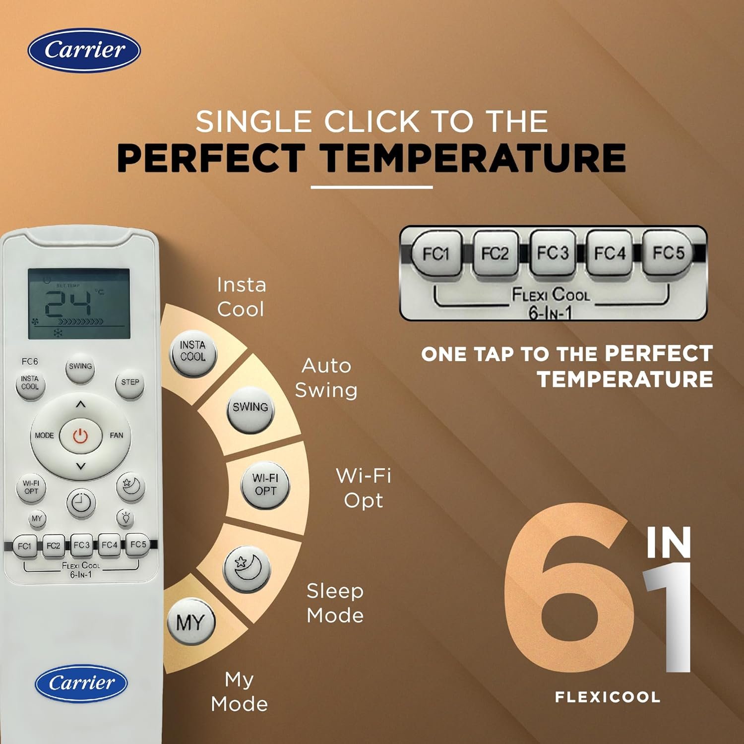 Carrier 1 Ton 5 Star Wi-Fi Smart Flexicool Inverter Split AC (Copper, Convertible 6-in-1 Cooling,Smart Energy Display,HD & PM 2.5 Filter, ESTER EDGE FXi (Wi-Fi), CAI12EE5R35W0,White)