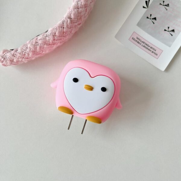 CASENED Case for Apple 20W iPhone USB-C Power Adapter Charger and USB Lightning Cable Protector | 3D Cartoon Design Soft Phone Charging Protective Cover (Pink Penguin)
