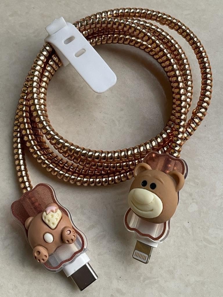 CASENED Case for Apple 20W iPhone USB-C Power Adapter Charger and USB Lightning Cable Protector | 3D Cartoon Design Soft Phone Charging Protective Cover (Tedy-Brown)