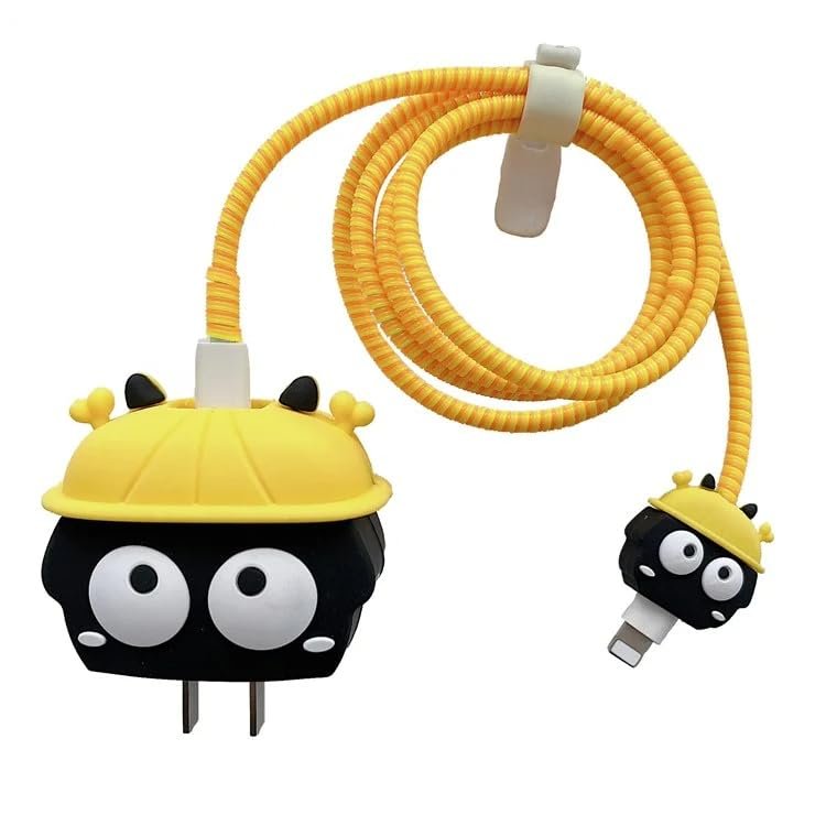 CASENED Case for Apple 20W iPhone USB-C Power Adapter Charger and USB Lightning Cable Protector | 3D Cartoon Design Soft Phone Charging Protective Cover (Yellow-Hat)