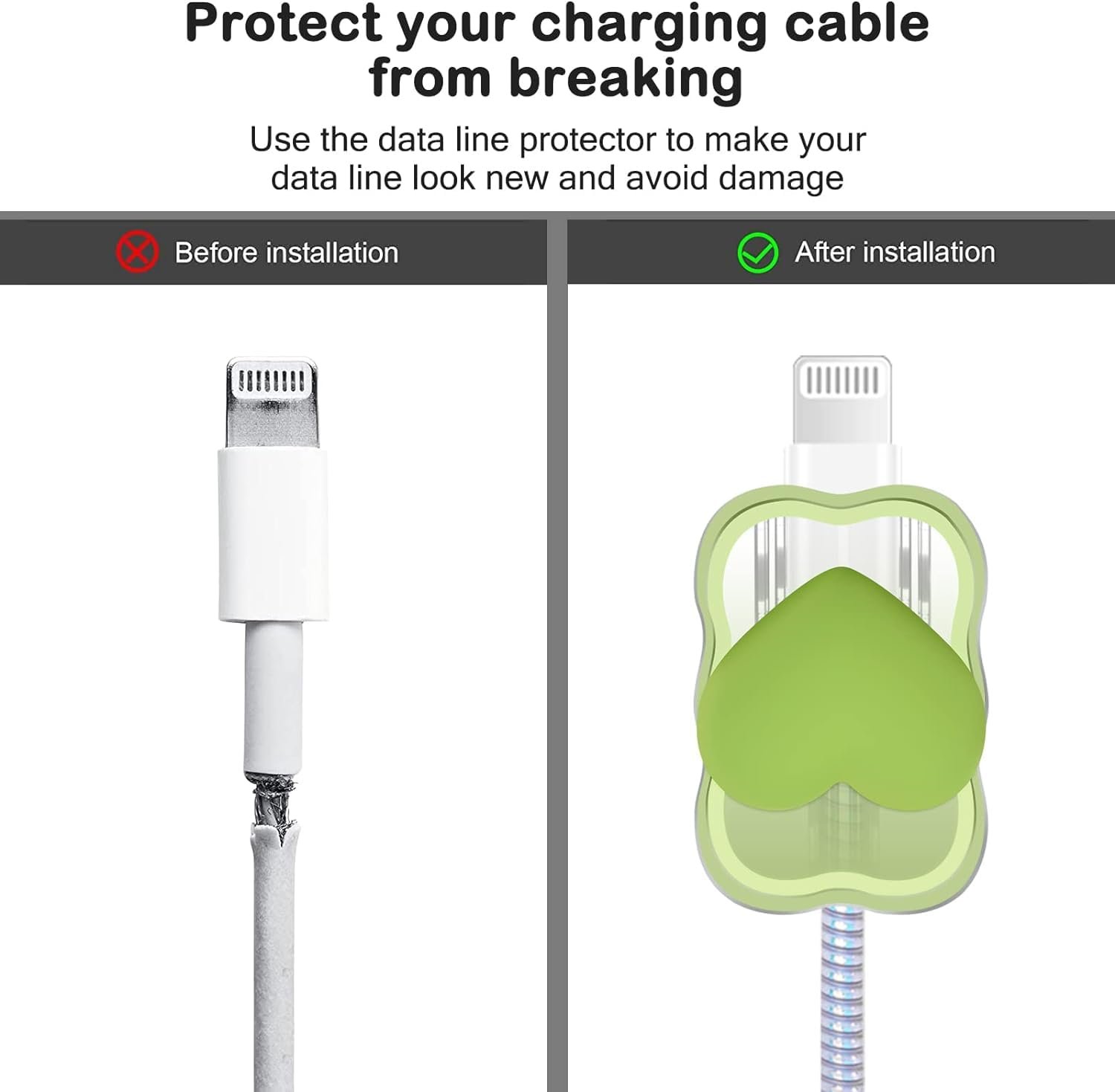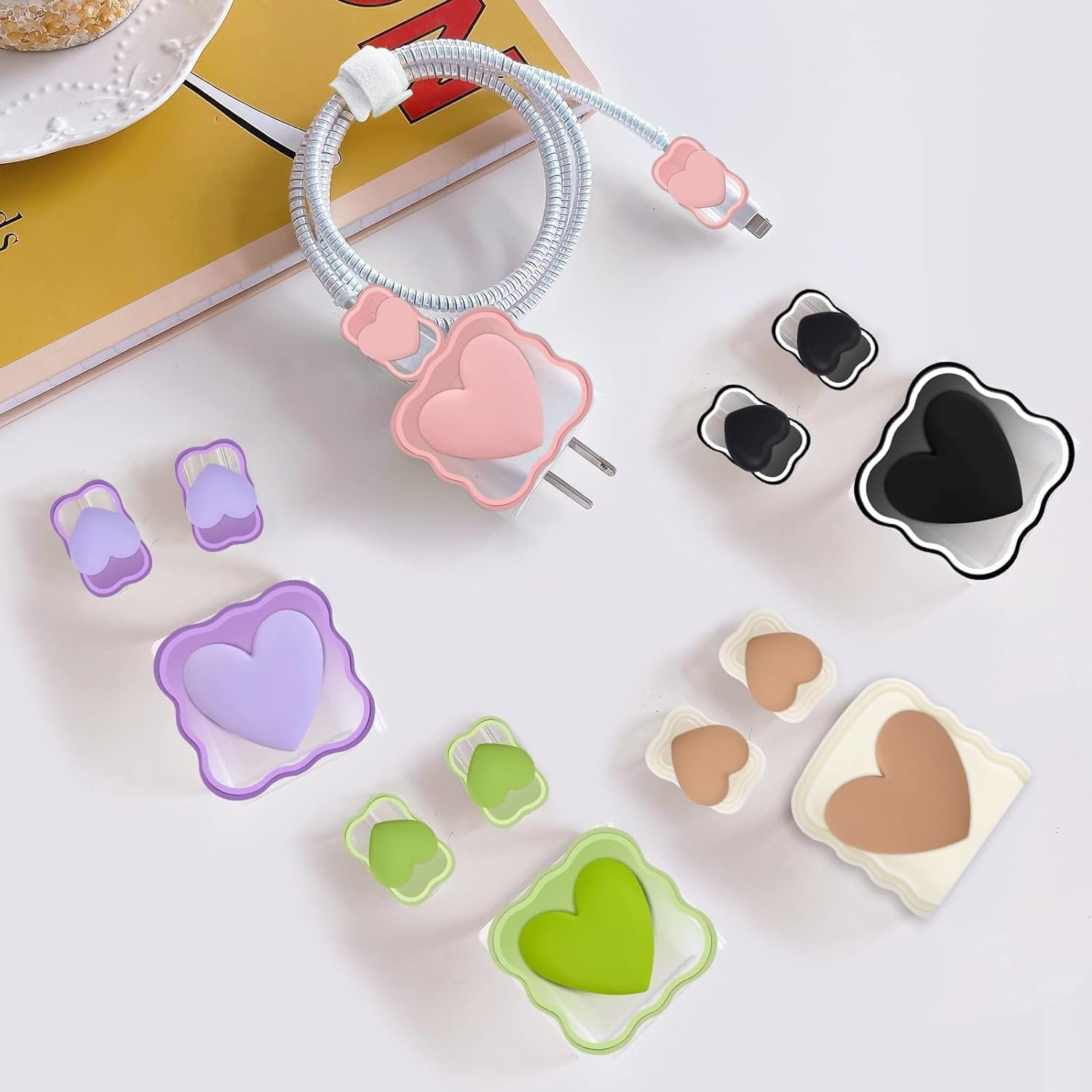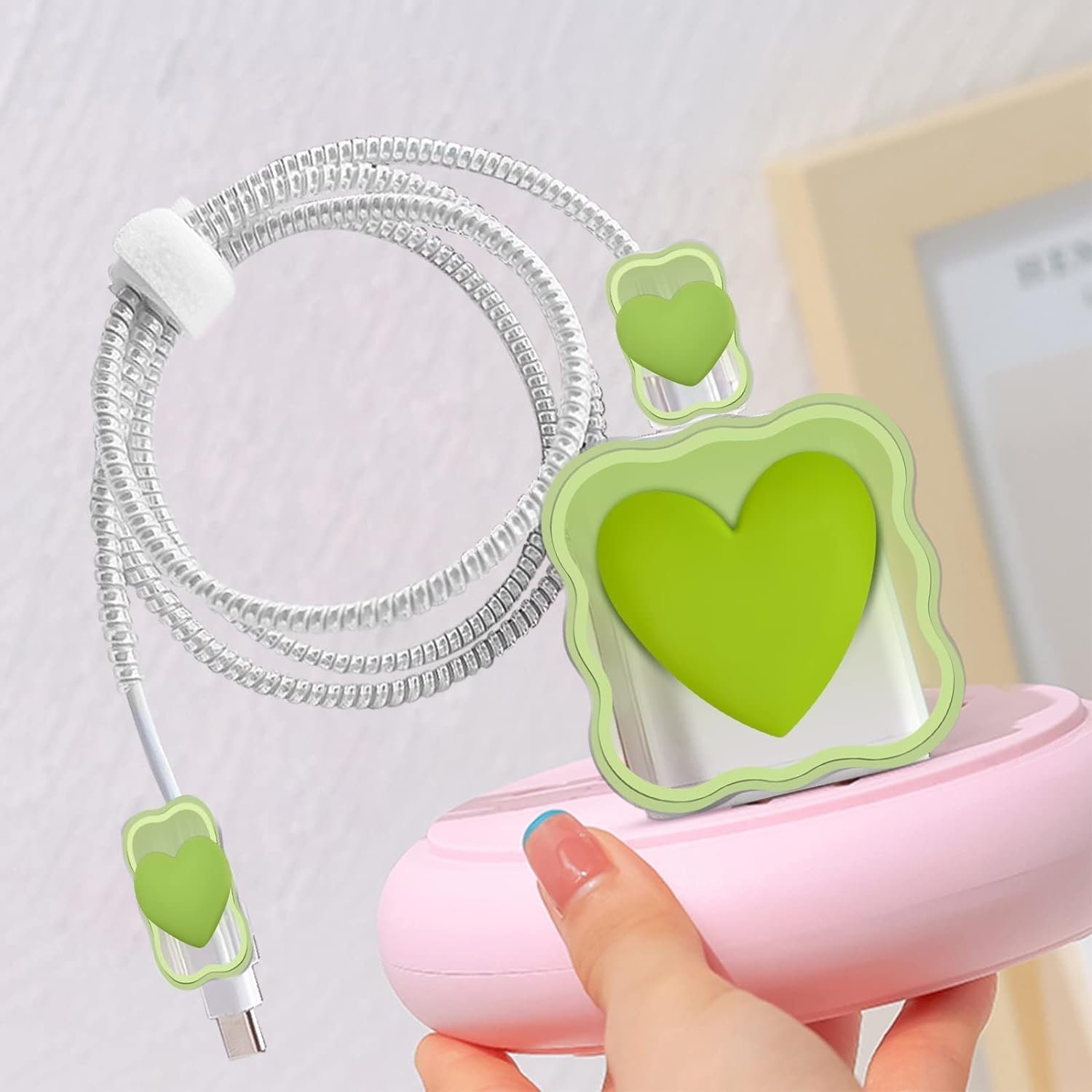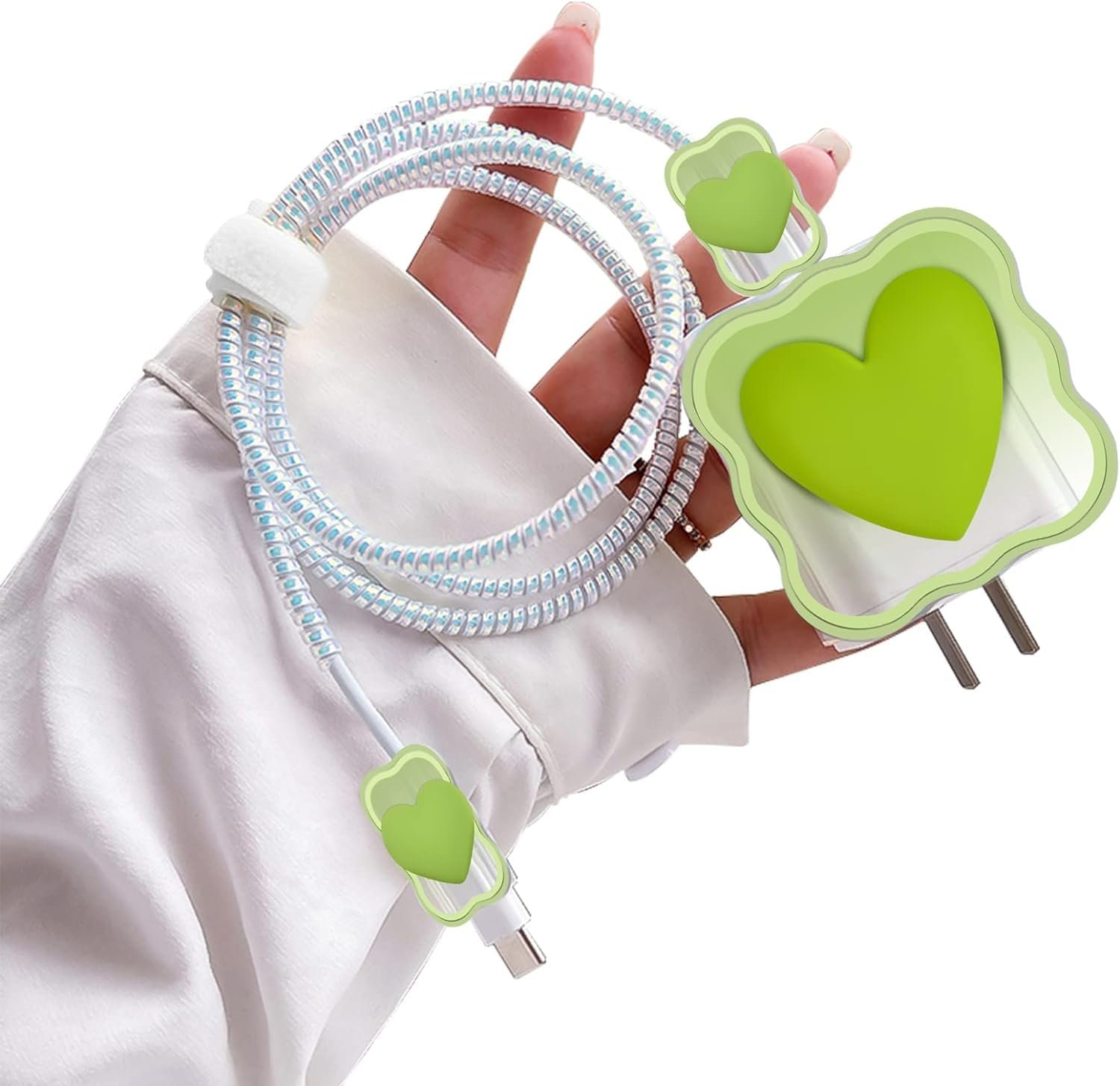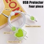 CASENED Case for Apple 20W iPhone USB-C Power Adapter Charger and USB Lightning Cable Protector | 3D Heart Design Soft iPhone Charger Cover (Green Heart)