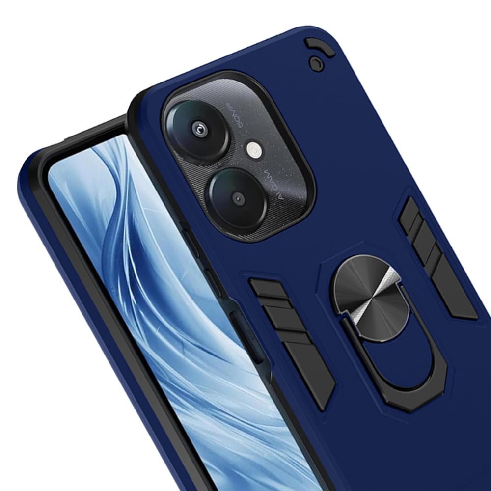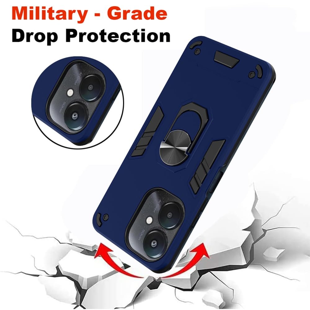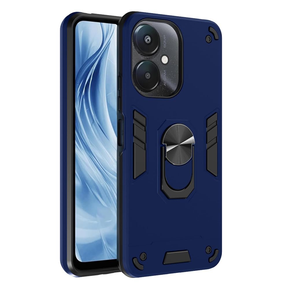 Casotec Armor Mi Redmi 13C 5G / Poco M6 5G Defender Case | Rotating Ring Holder & Kickstand in-Built | Military Grade Armor | 360 Degree Protection Back Cover for Mi Redmi 13C 5G / Poco M6 5G (Blue)