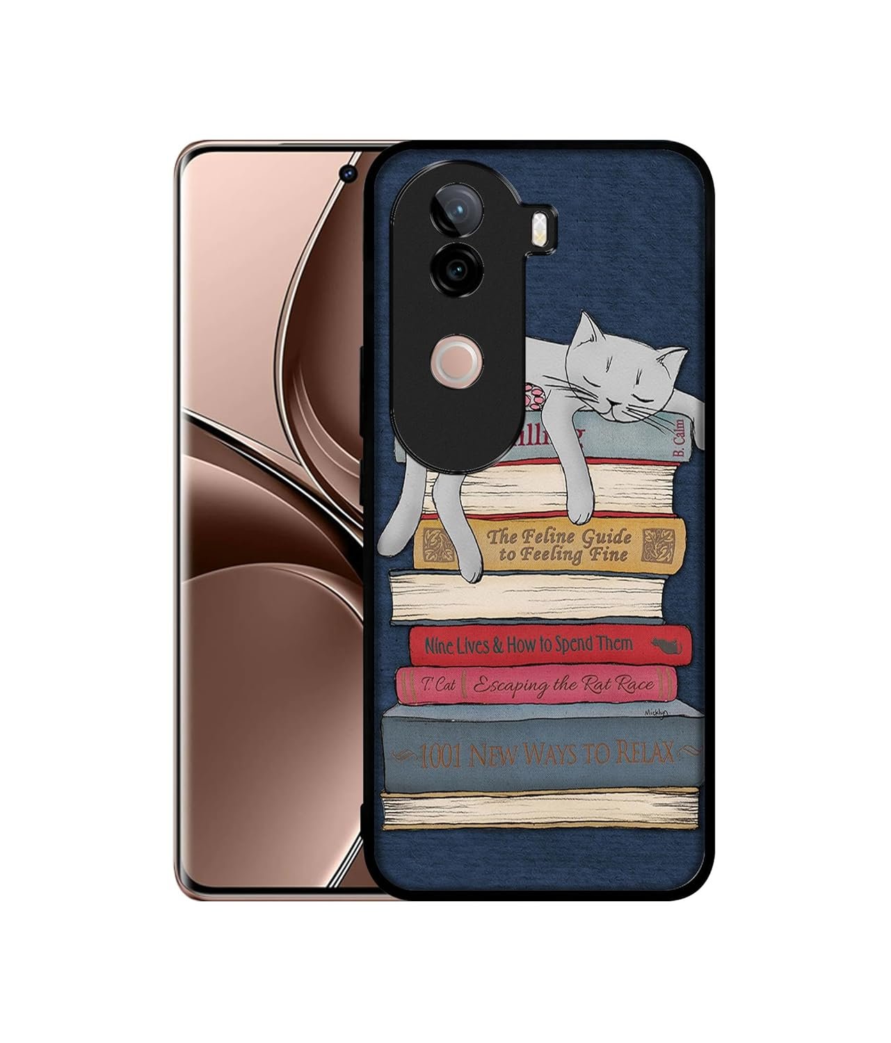 Casotec Cat Sleeping On The Books Design Premium 2D Printed Metal Back Case Cover for Vivo V40e 5G / iQOO Z9s 5G