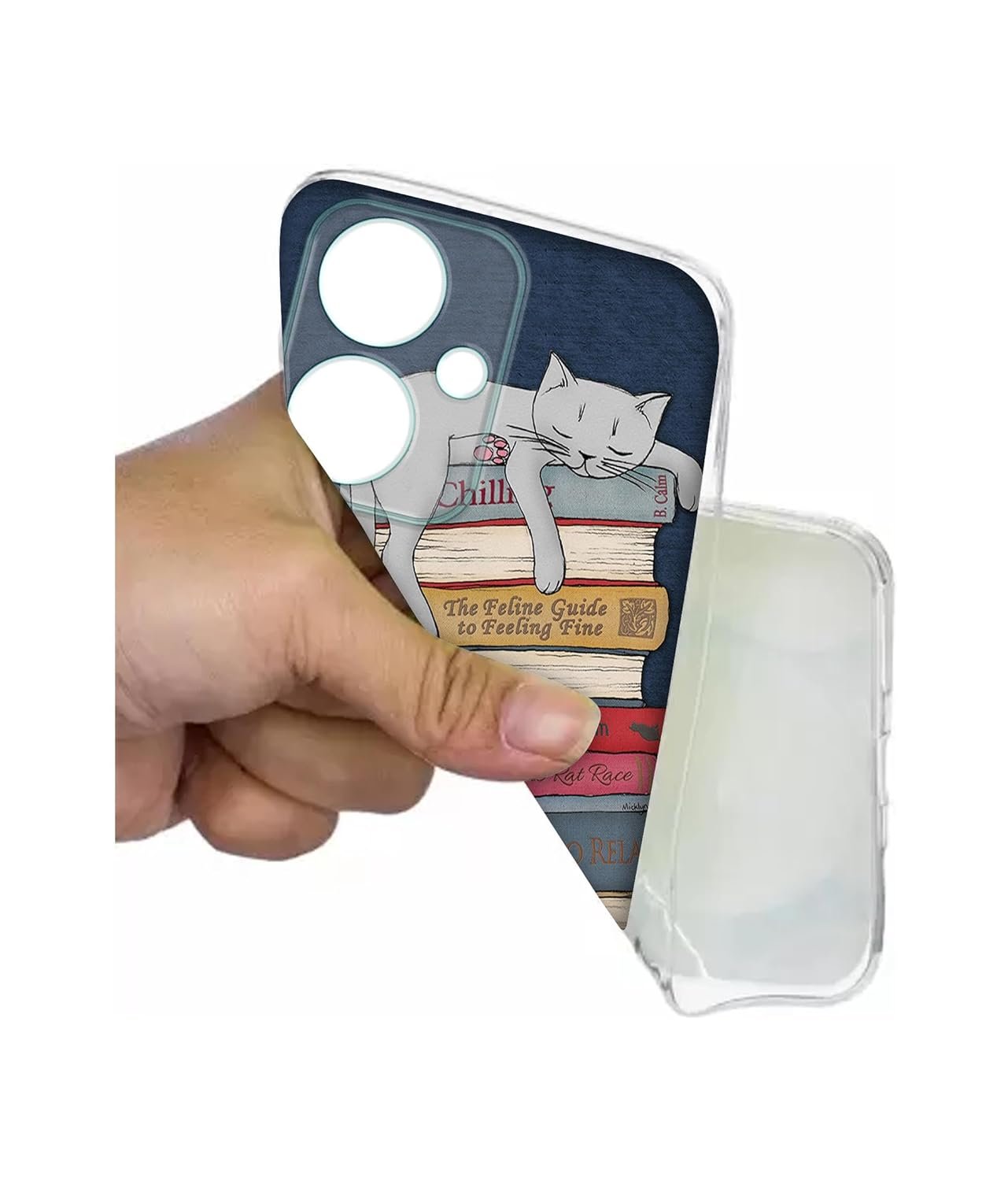 Casotec Cat Sleeping On The Books Design Printed Silicon Soft TPU Back Case Cover for Mi Redmi 13C 5G / Poco M6 5G