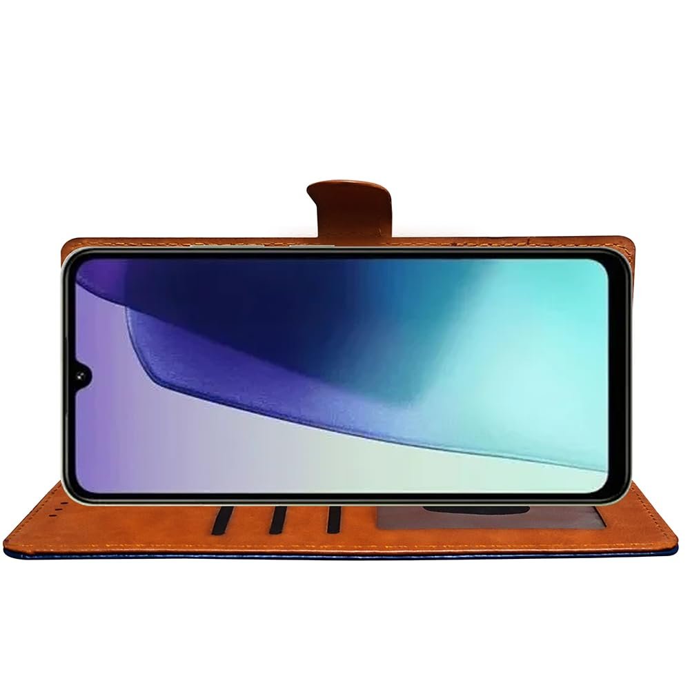 TheGiftKart Flip Back Cover Case for Samsung Galaxy M05 / A05 / F05 | Dual-Color Leather Finish | Inbuilt Stand & Pockets | Flip Back Cover for Samsung M05 / A05 / F05 (Blue with Sky)