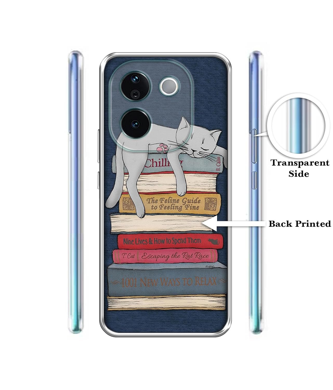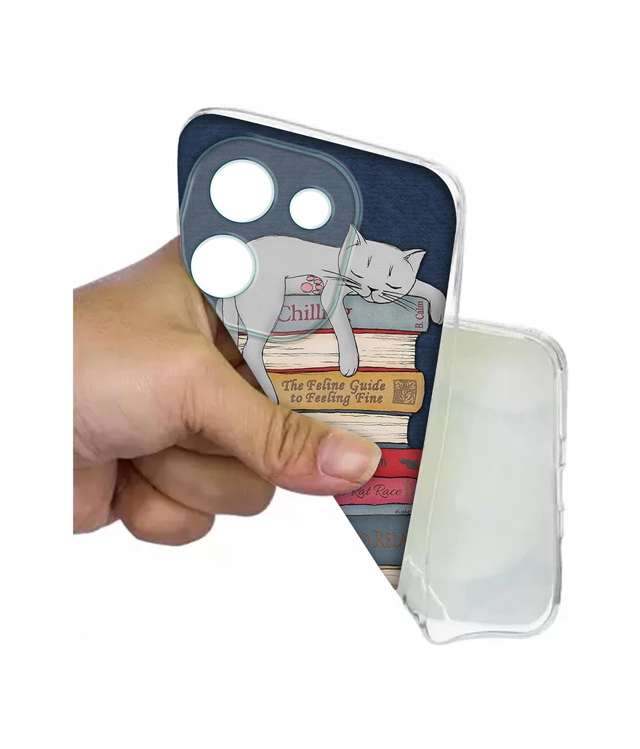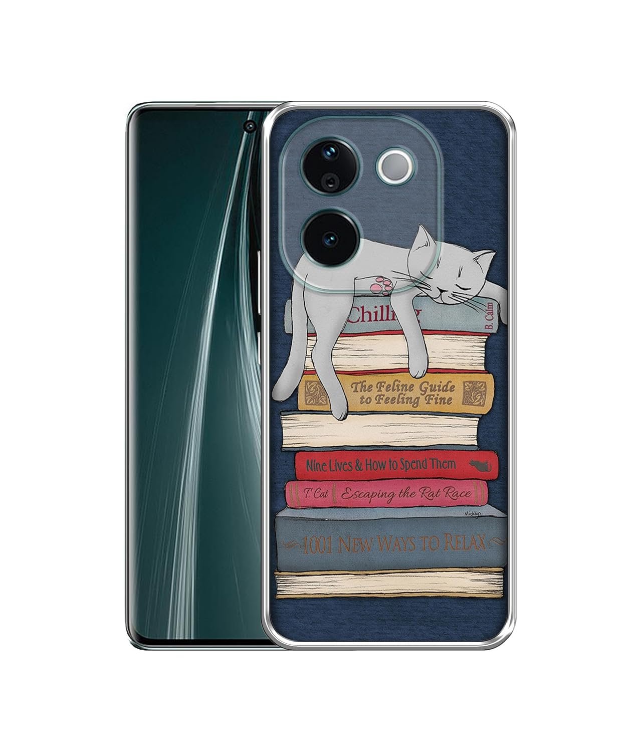 Cat Sleeping On The Books Design Printed Silicon Soft TPU Back Case Cover for Vivo T3 Pro 5G / iQOO Z9s Pro 5G