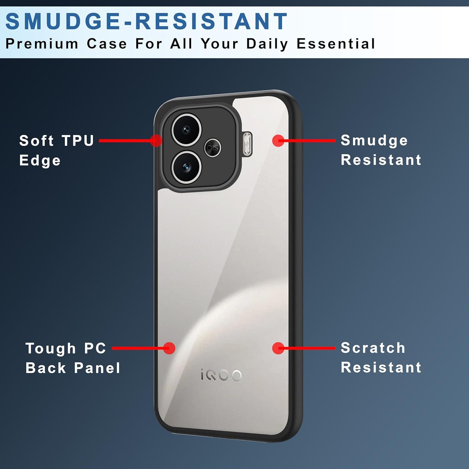 CEDO iQOO Neo 10R (5G) Backcover Case | Camera Protection Bump Shockproof Edge | Ultra Hybrid Transparent Acrylic Clear TPU+PC Hard Backcase Cover (Black)