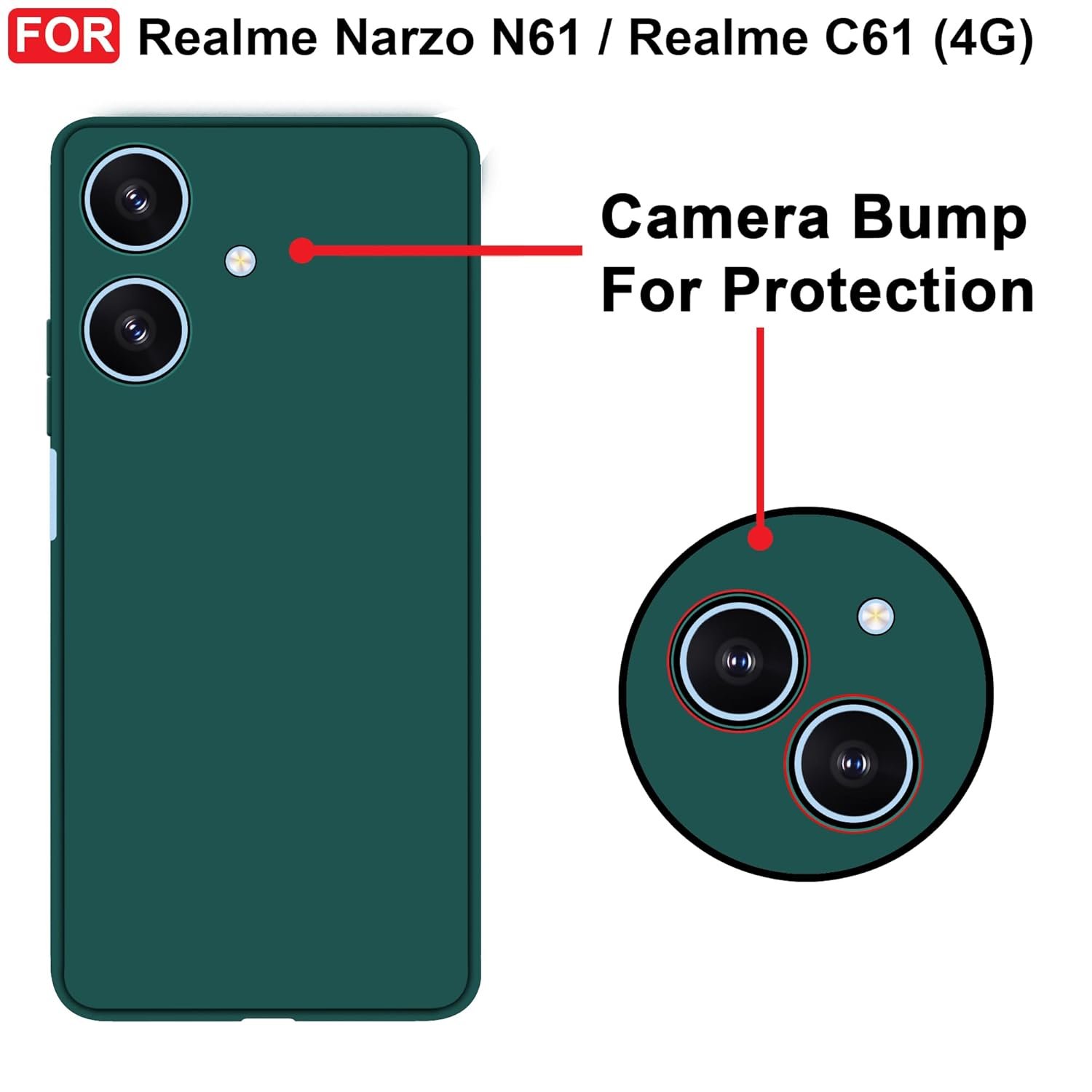 CEDO Realme Narzo N61 / Realme C61 (4G) Back Cover | Camera Bump Protection & Inner Velvet Fabric Lining | Ultra Slim Matte Soft Rubberised Case Cover (Green)