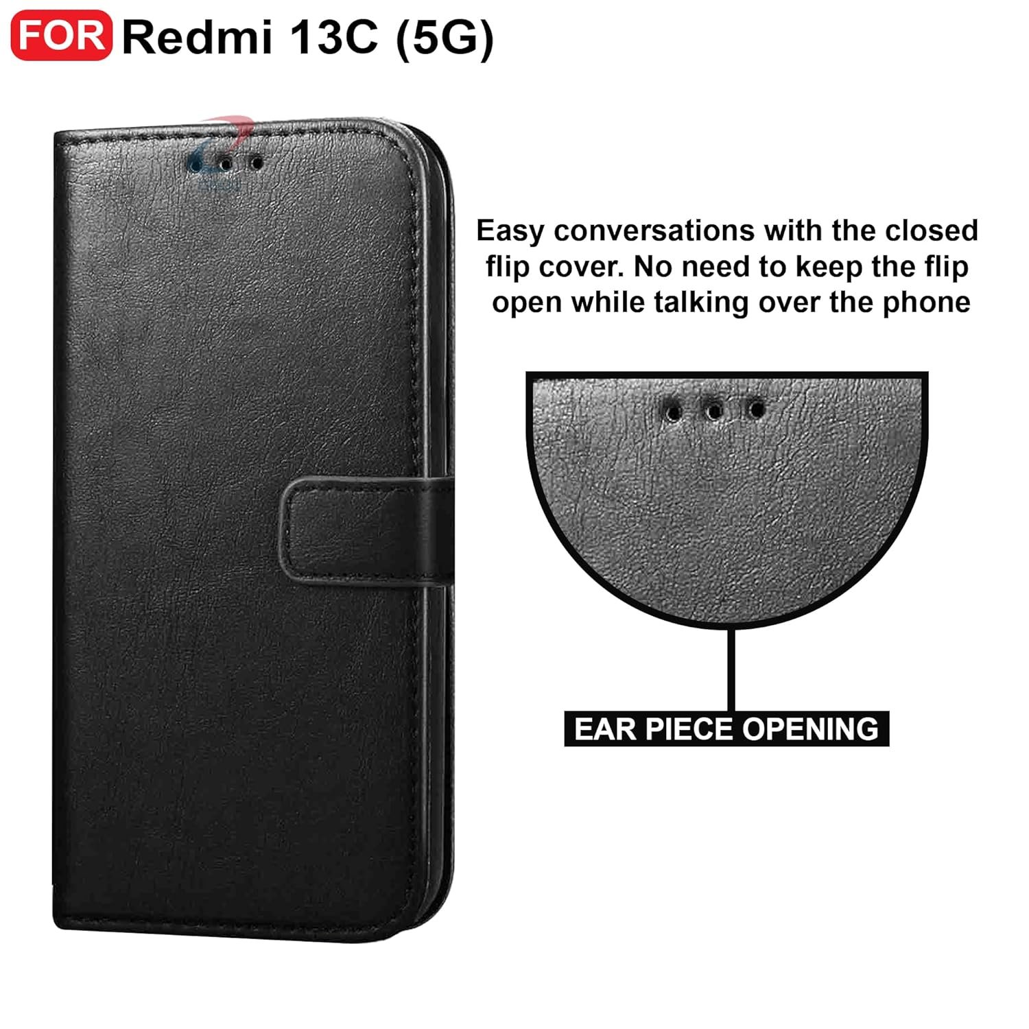 CEDO Redmi 13C (5G) / Poco M6 (5G) Flip Cover | Leather Finish | Inside Pockets & Inbuilt Stand | Shockproof Wallet Style Magnetic Closure Back Case Flipcover (Black)