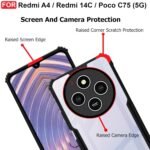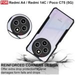 CEDO Redmi A4 / Redmi 14C / Poco C75 (5G) Back Case Cover | Camera Protection Shockproof Bumper-Edge | Acrylic Crystal Clear 360 Degree Protection TPU+PC | Transparent Eagle Back Case Cover (Black)