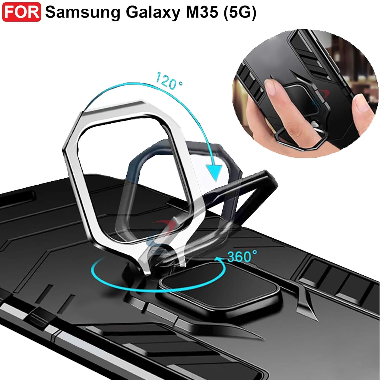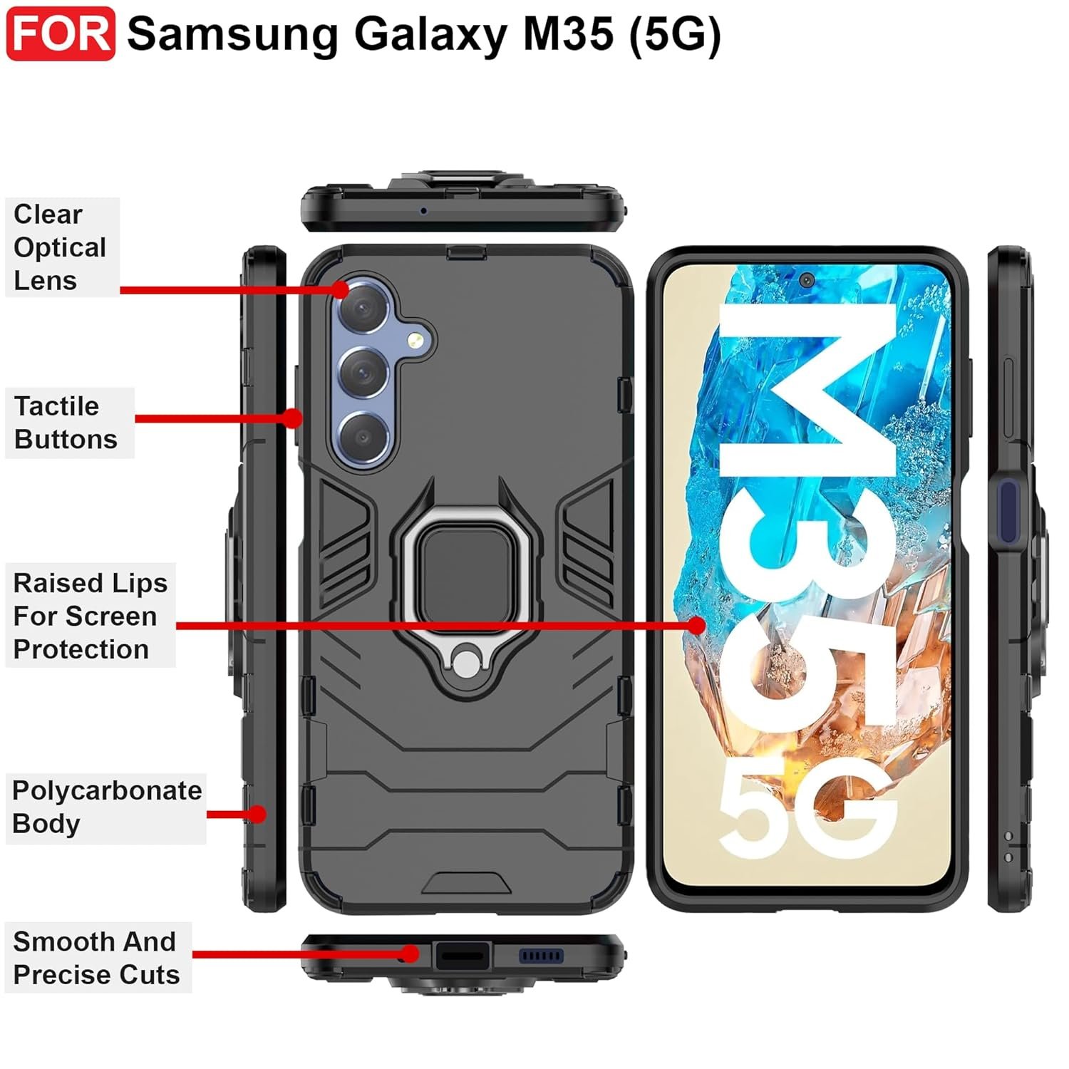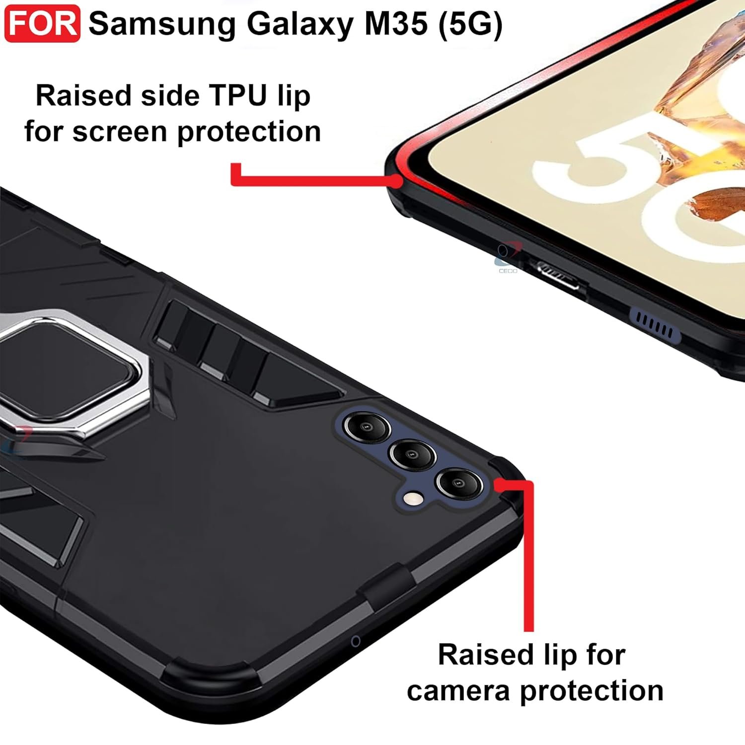 CEDO Rugged Samsung Galaxy M35 (5G) Defender Case | Rotating Ring Holder & Kickstand in-Built | Military Grade Armor | Bumper Back Cover (Black)
