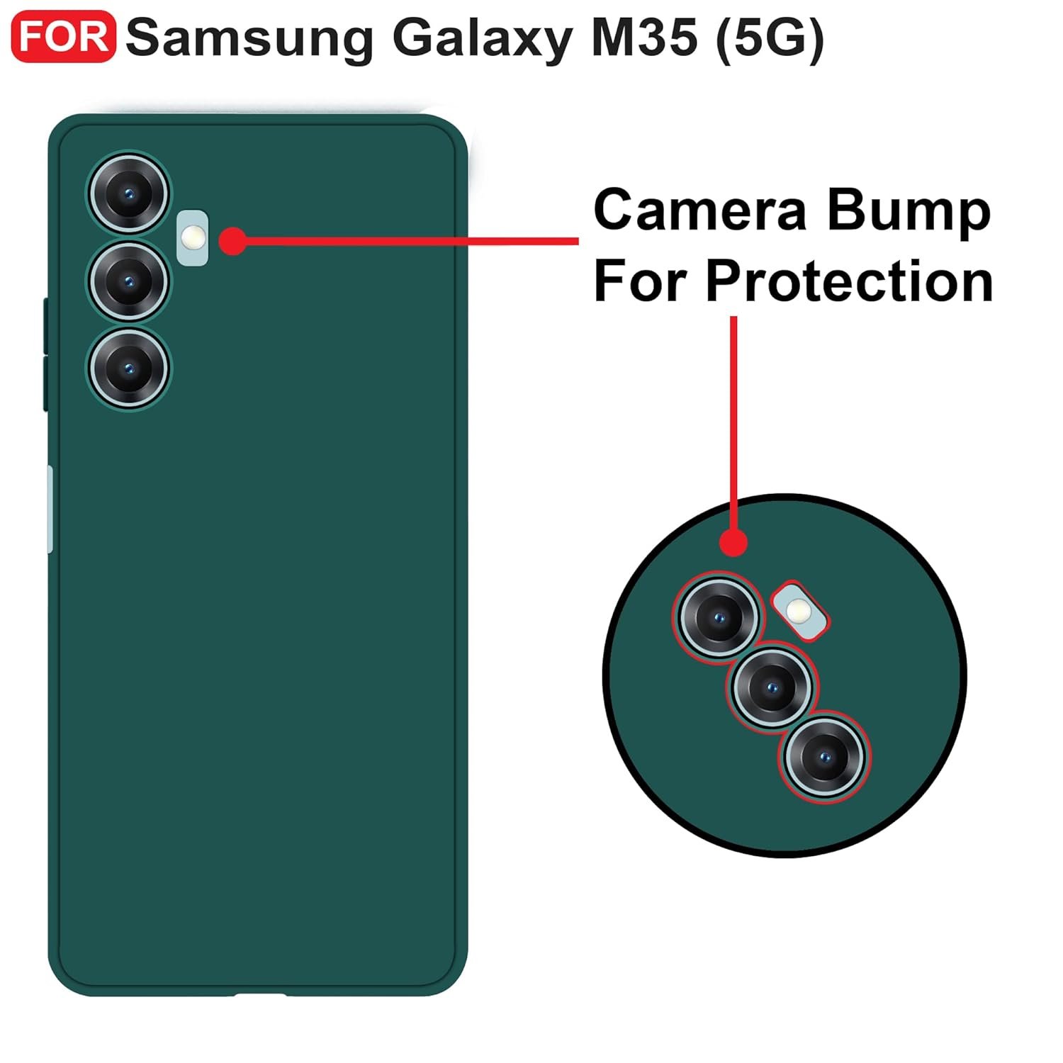 CEDO Samsung Galaxy M35 (5G) Back Cover | Camera Bump Protection & Inner Velvet Fabric Lining | Ultra Slim Matte Soft Rubberised Case Cover (Green)