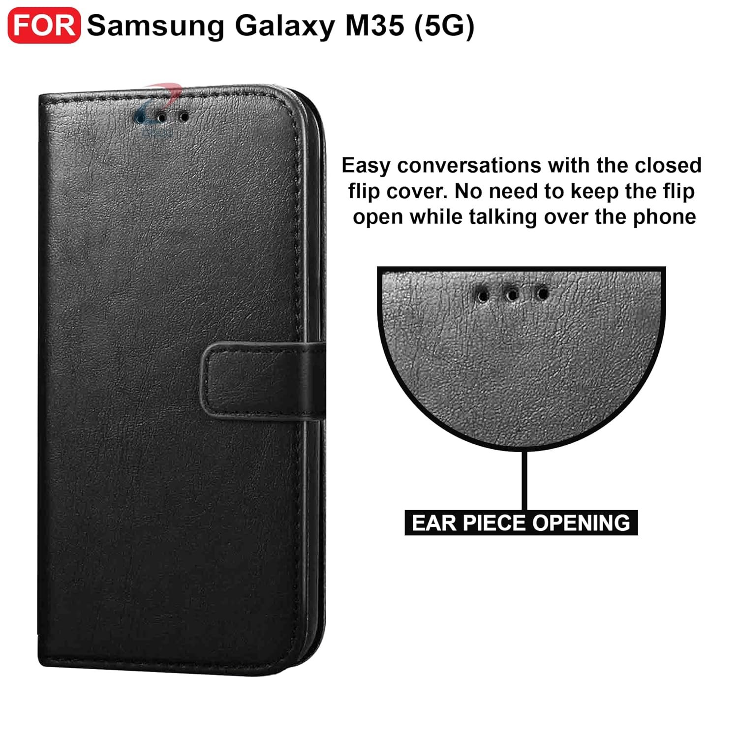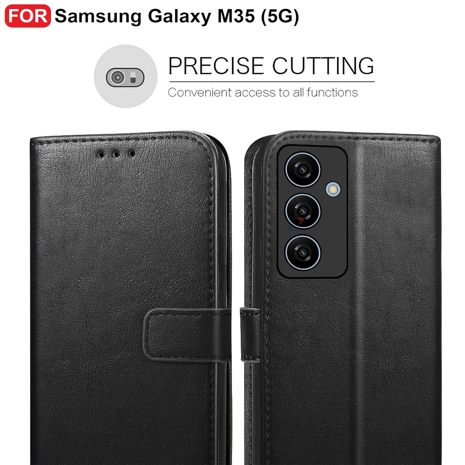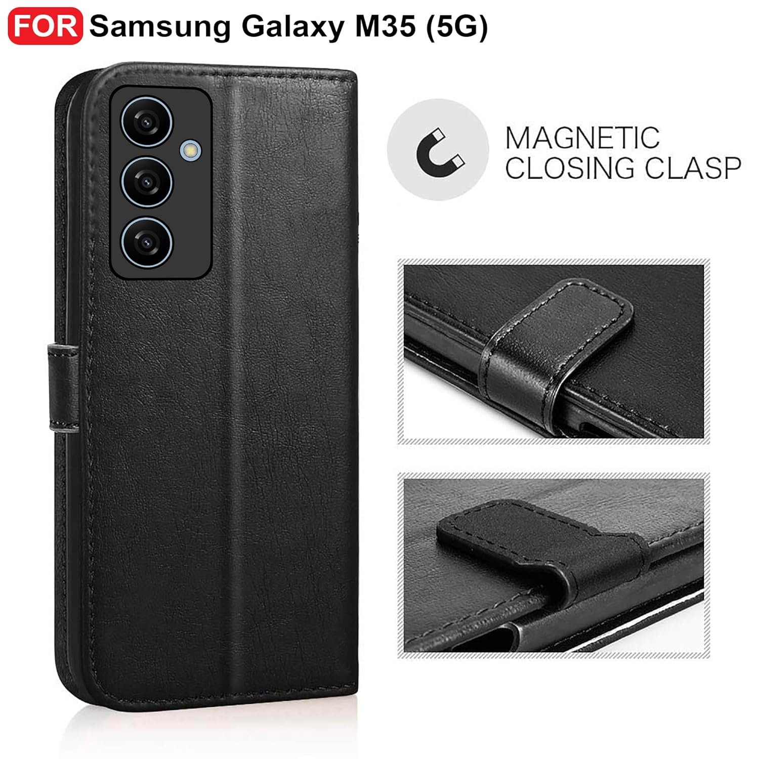 CEDO Samsung Galaxy M35 (5G) Flip Cover | Leather Finish | Inside Pockets & Inbuilt Stand | Shockproof Wallet Style Magnetic Closure Back Case Flipcover (Black)