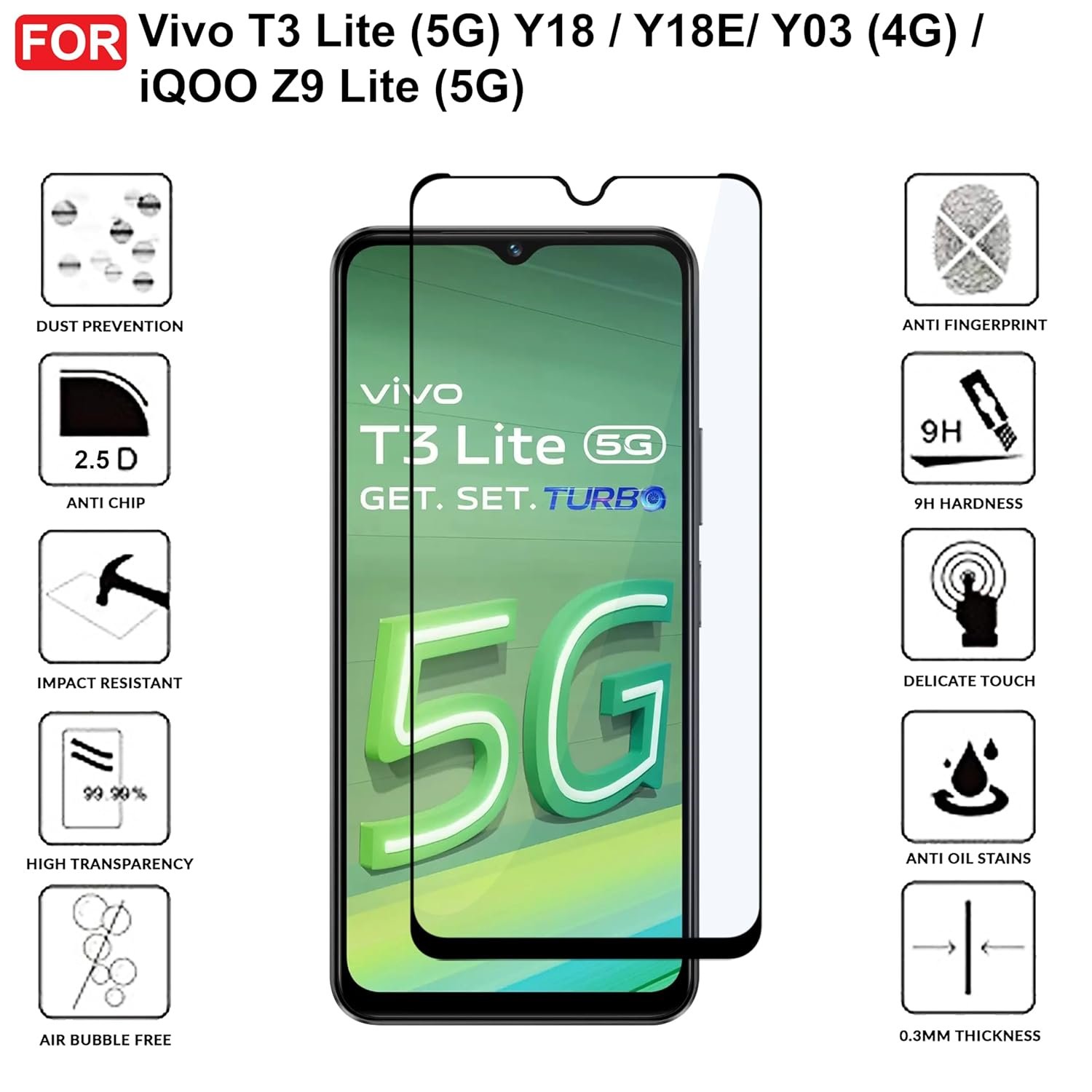 DISCLAIMER: Compatible with Vivo T3 Lite (5G) Y18 / Y18E/ Y03 (4G) / iQOO Z9 Lite (5G) Mobile only
