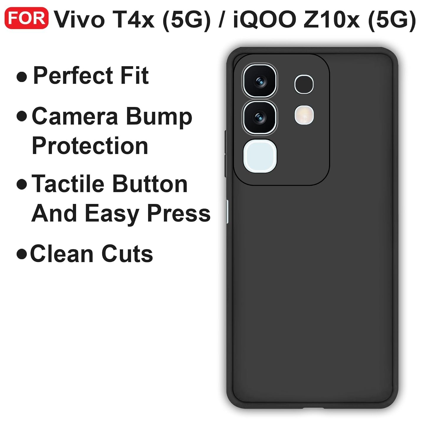 CEDO Vivo T4x (5G) / iQOO Z10x (5G) Back Cover | Camera Bump Protection & Inner Velvet Fabric Lining | Ultra Slim Matte Soft Rubberised Case Cover (Black)