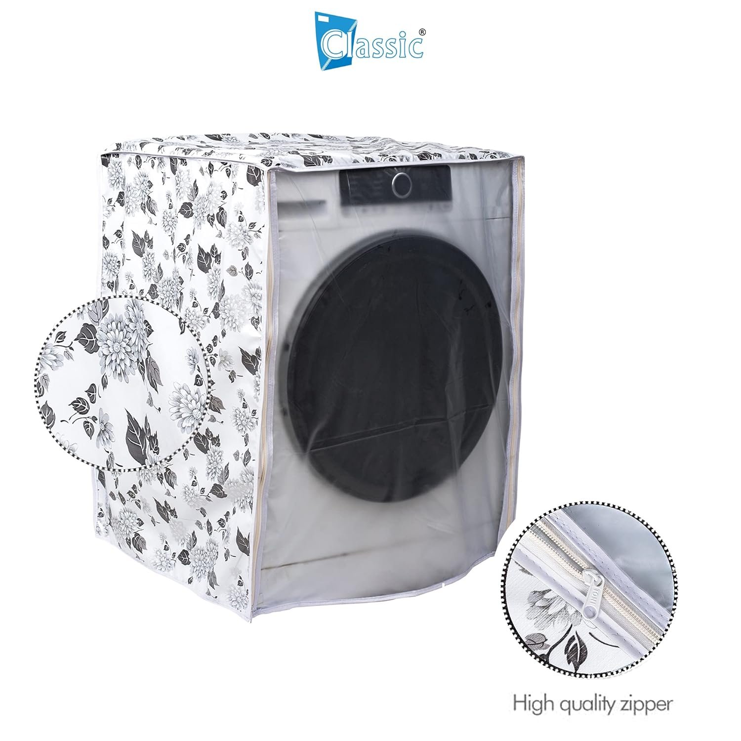 Classic® Front Load Washing Machine Cover Suitable for Bosch 6.5 Kg, 7 Kg, 7.5 Kg, 8 Kg, 8.5 Kg, 9 Kg, 9.5 Kg, 10 Kg (63cmsX63cmsX81cms, Half White & Grey)