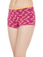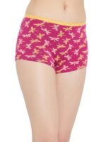 Maroon mid waist boyshorts offering full rear coverage.Crafted with breathable stretchable cotton spandex fabric.Designed with pink yellow butterfly print all over.Soft elastic at the waistband leg openings for snug fit.Double layered gusset for hygiene.Ideal to be worn under fitted clothes for no visible panty lines.