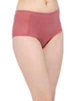 Clovia Women’s Cotton High Waist Hipster Panty with Powernet Panels in Pink