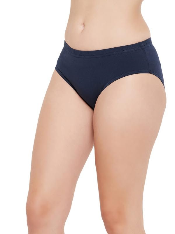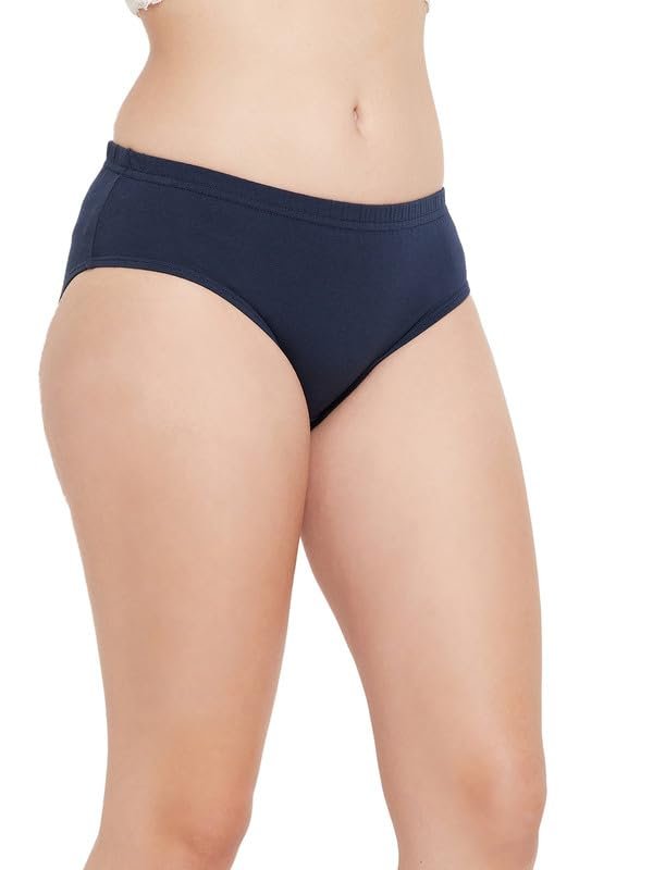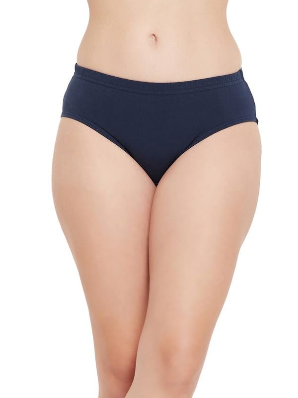 Clovia Women’s Cotton Medium Waist Outer Elastic Hipster Panty – Navy Blue