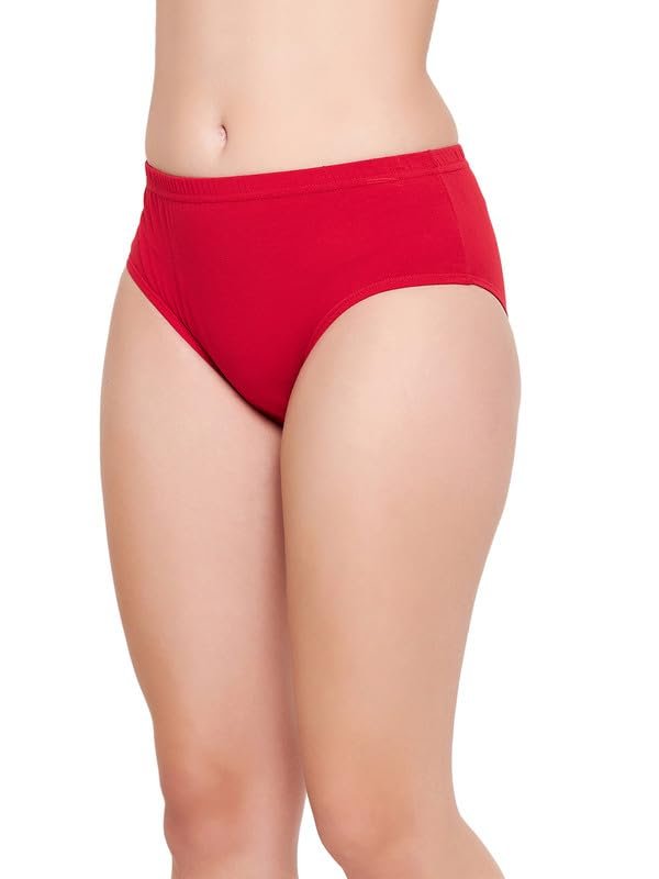 Clovia Women’s Cotton Medium Waist Outer Elastic Hipster Panty – Red