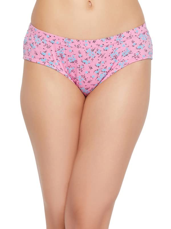 Clovia Women’s Cotton Mid Waist Floral Print Hipster Panty with Inner Elastic in Pink