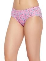 Baby pink mid waist hipster panty offering medium coverage.Crafted with soft premium 100% cotton fabric.Designed with floral print all over.Soft elastic at the waistband leg openings for a snug fit.Double layered gusset for hygiene.Inner ElasticElastic along at the waistband leg openings are encased in fabric for a comfortable snug fit.