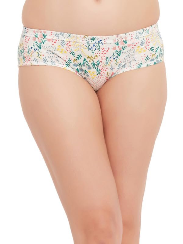 Clovia Women’s Cotton Mid Waist Floral Print Hipster Panty with Inner Elastic in White