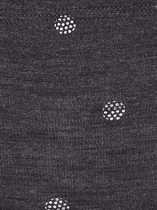 Dark grey printed mid waist hipster panty offering medium coverage.Crafted with soft premium 100% cotton fabric.Soft elastic at the waistband leg openings for a snug fit.Double layered gusset for hygiene.Inner ElasticElastic along the waist leg openings are encased in fabric for a comfortable snug fit.