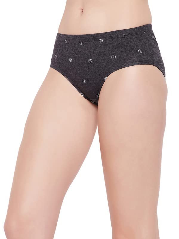 Clovia Women’s Cotton Mid Waist Printed Hipster Panty with Inner Elastic in Grey