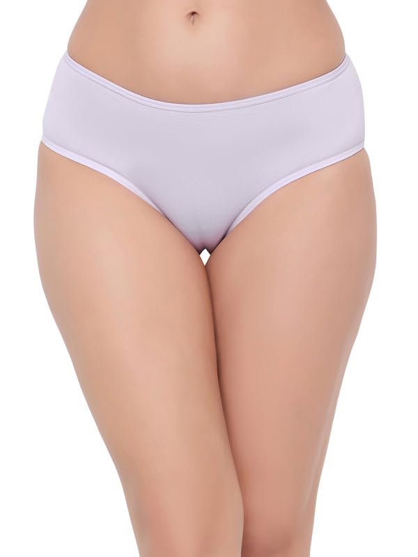 Clovia Women’s Cotton Spandex Medium Waist Outer Elastic Hipster Panty in Purple