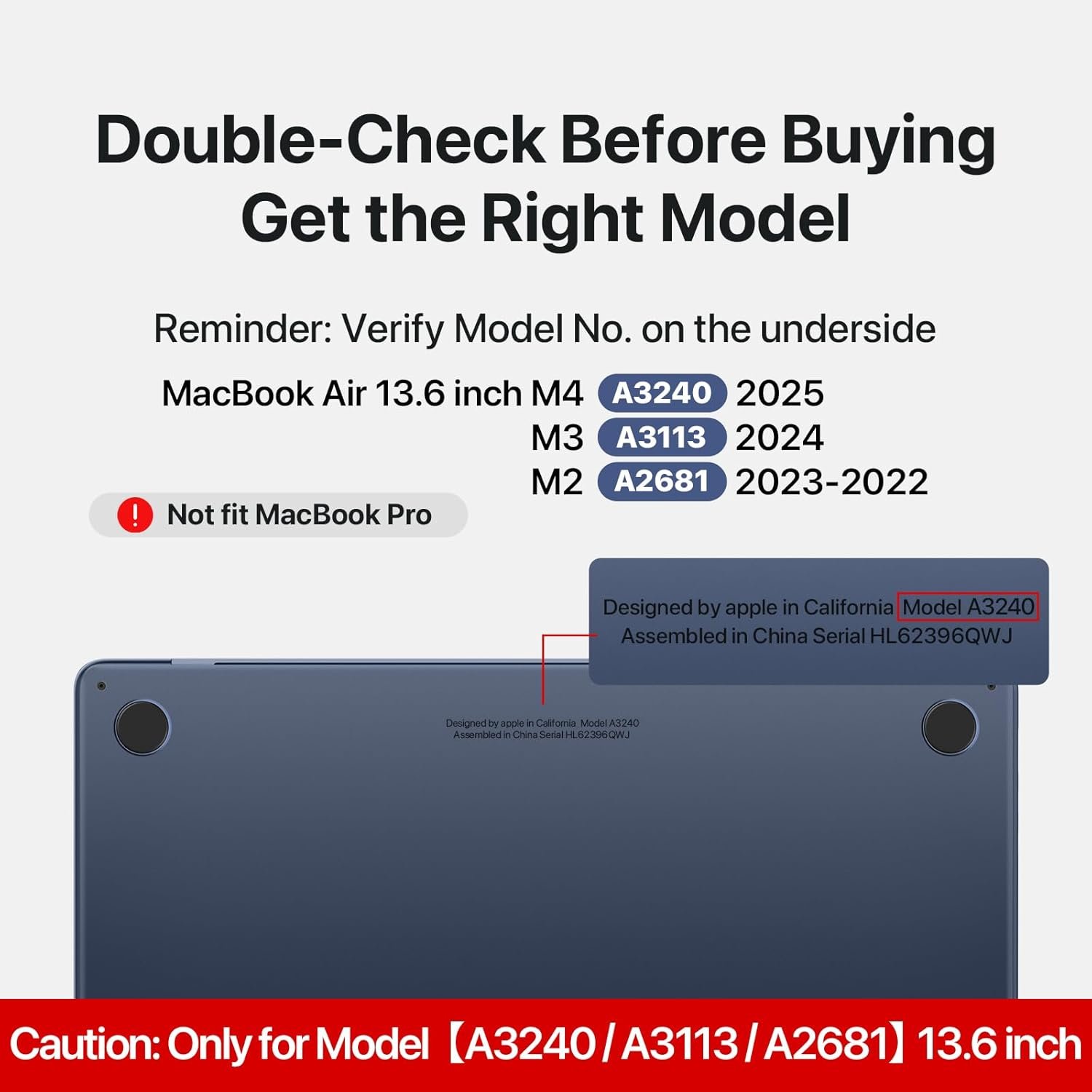 Note: Designed ONLY to be compatible with MacBook Air 13.6 inch 2025 2024-2022 M4 M3 M2 Chip with Liquid Retina Display & Touch ID (Model: A3240 / A3113 / A2681). WARNING: This case is NOT compatible with other model laptops
