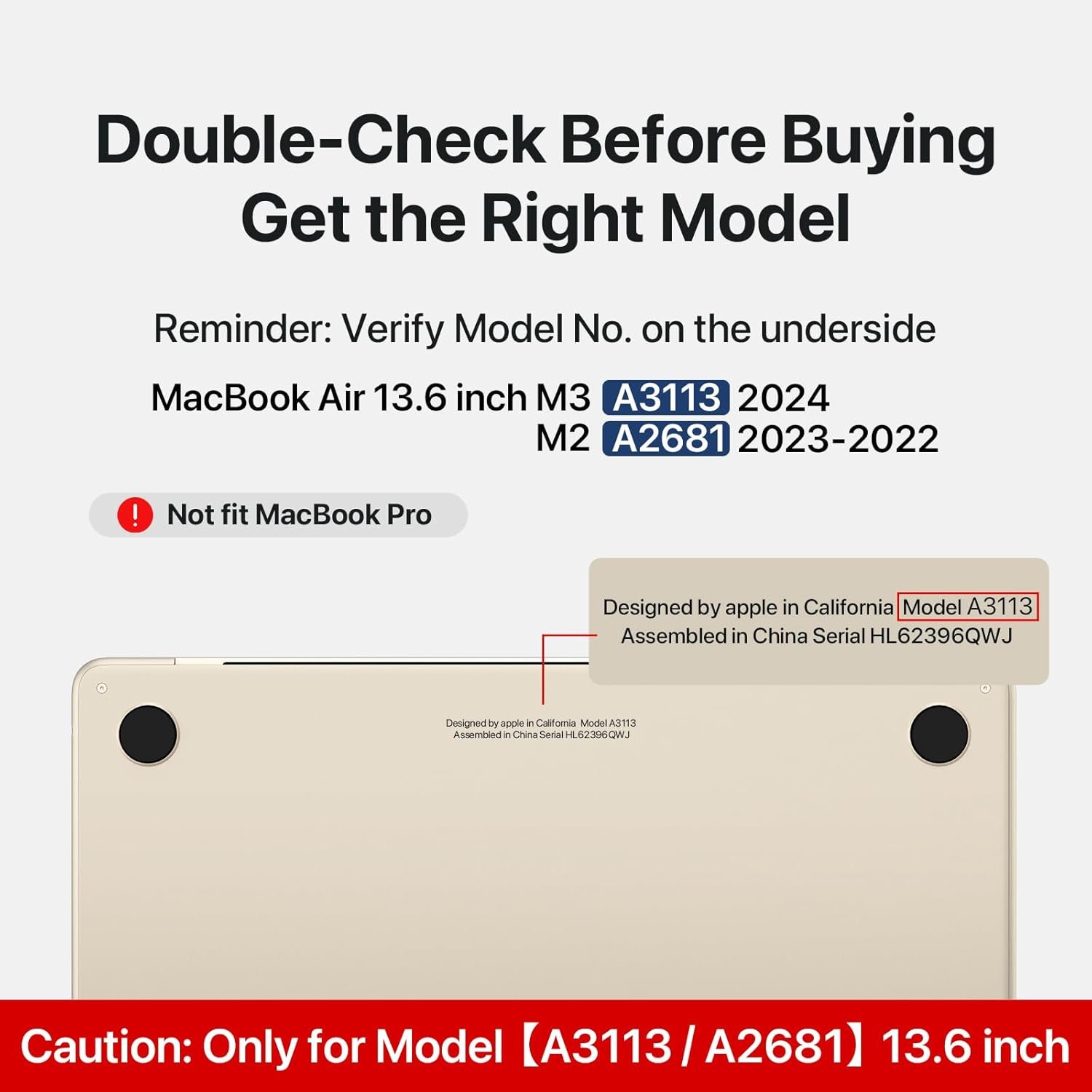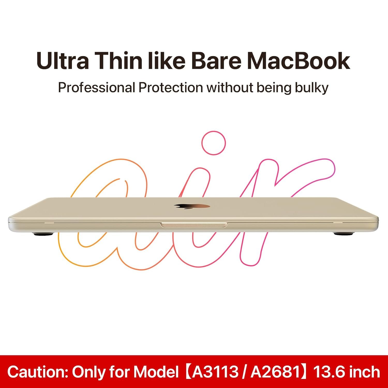 Note: Designed ONLY to be compatible with MacBook Air 13.6 inch 2025 2024-2022 M4 M3 M2 Chip with Liquid Retina Display & Touch ID (Model: A3240 / A3113 / A2681). WARNING: This case is NOT compatible with other model laptops